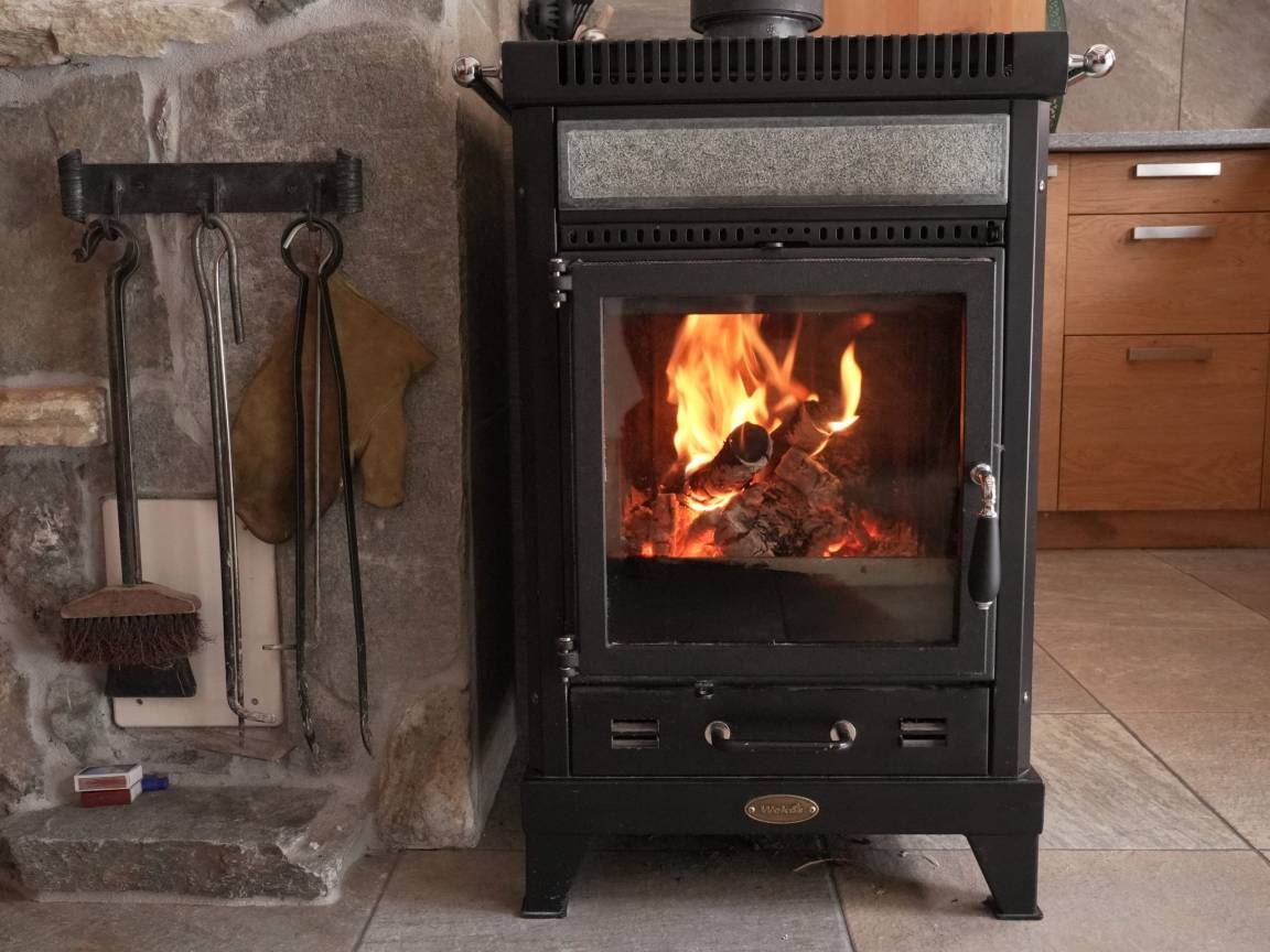 1. Etage: Sehr schöner Wohnraum (40 qm) mit tollem Steinplattenboden, rustikaler Holzbalkendecke, Kaminofen, Sat-TV, Sitzgarnitur, großem Esstisch, sehr gut ausgestatteter Einbauküche (Backofen, Gefrierschrank, Spülmaschine). Doppelzimmer. Bad: Du, Wb, WC.