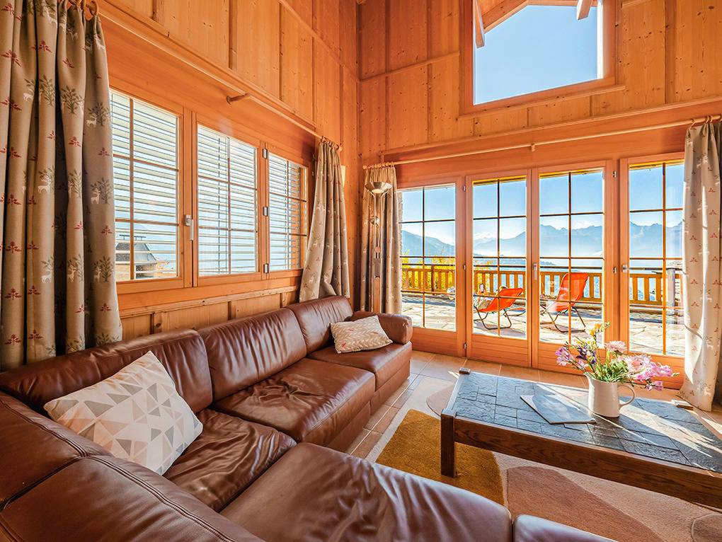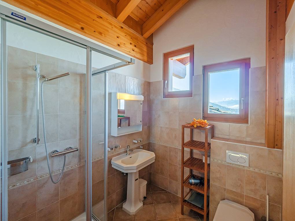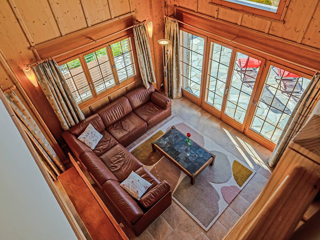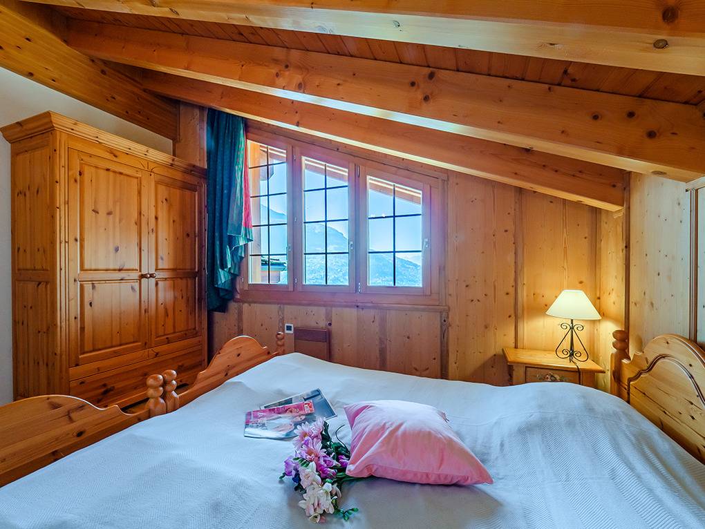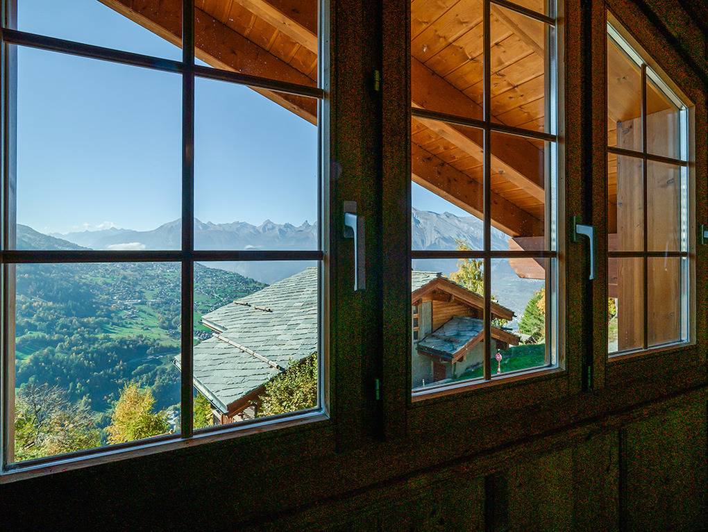 Ort: Veysonnaz. Chaletsiedlung in exponierter, sonniger Süd-West-Lage oberhalb des Ortes. Herrlicher Blick ins Rhône-Tal. Gondelbahn mit Ski-Schränken ca. 1,5 km (zu Fuß 900 m). Skibus 700 m. Ortsmitte 1 km. Pkw Zufahrt bis zum Haus (je nach Schneelage auf den letzten 200 m nur mit guter Winterausrüstung).