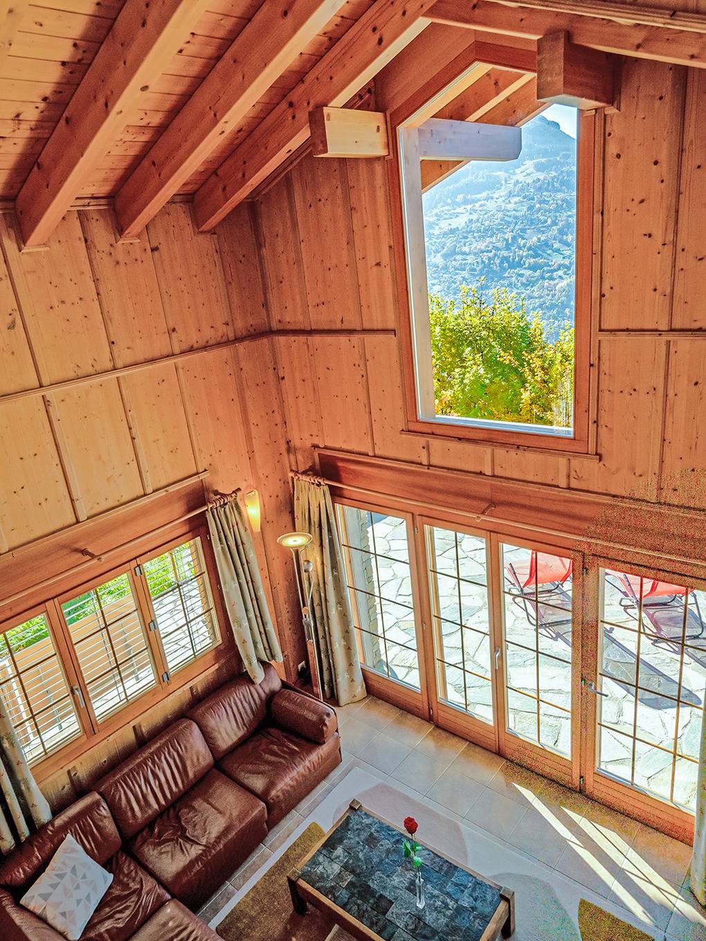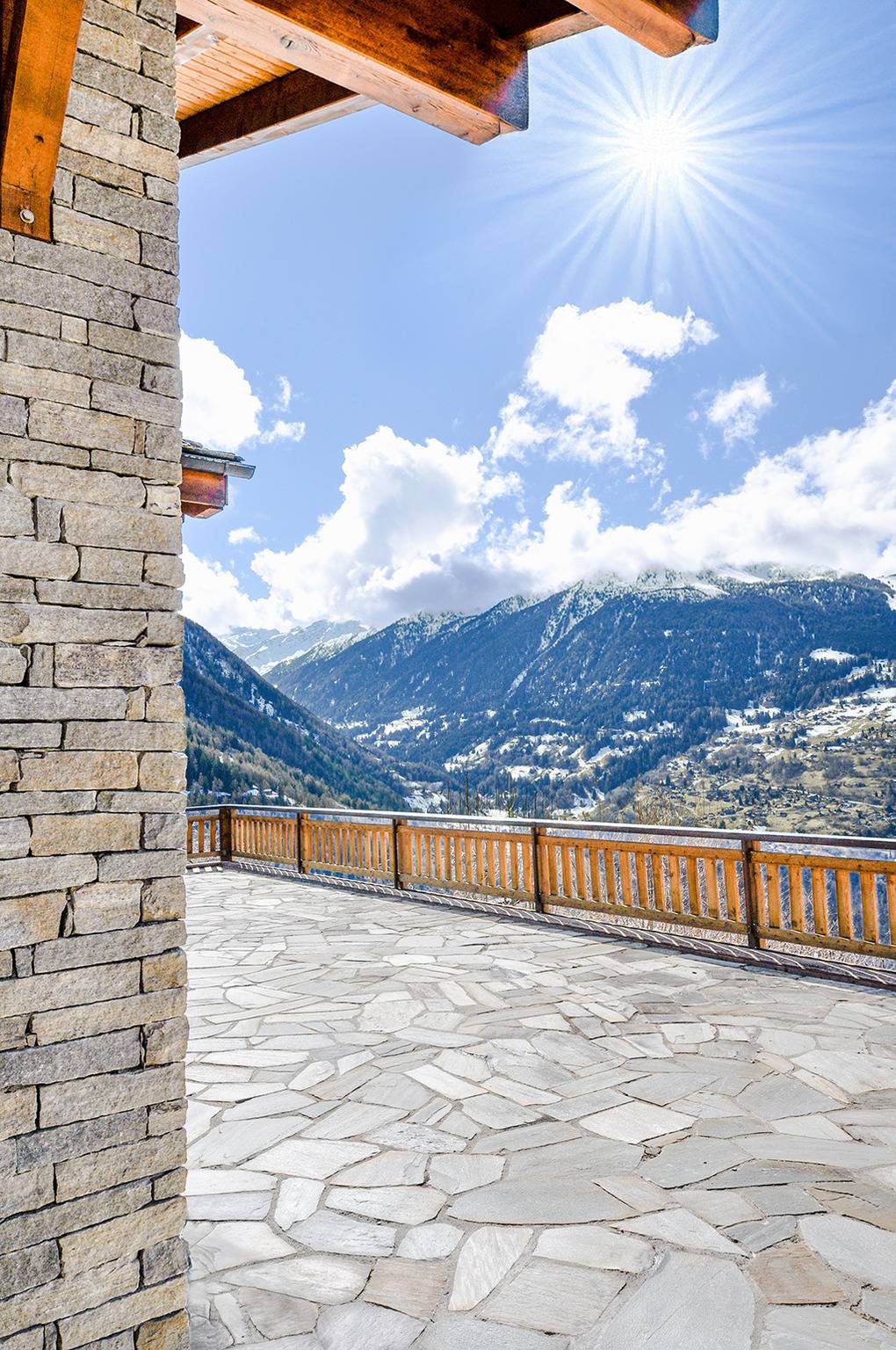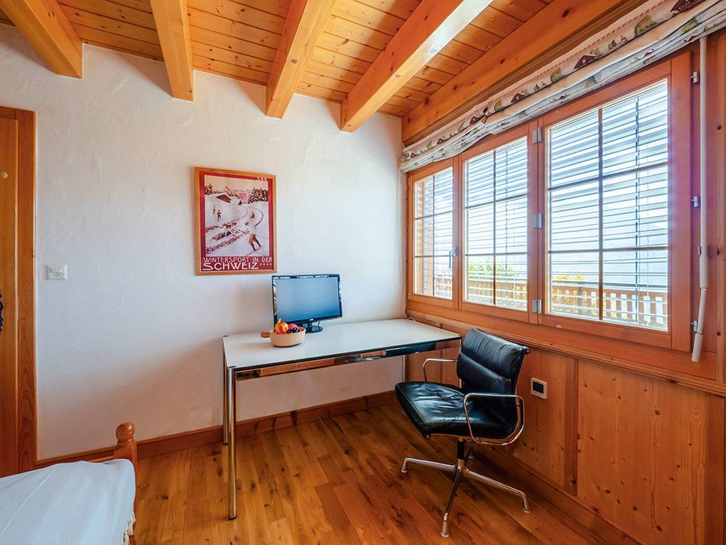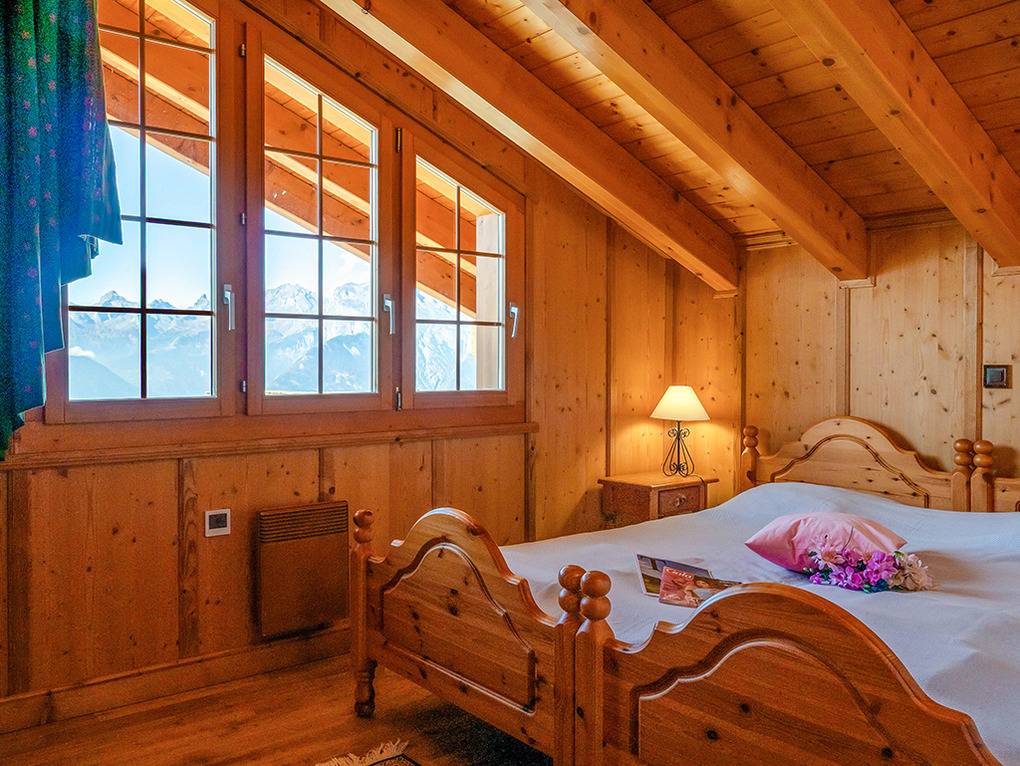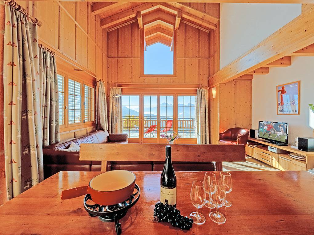 Ort: Veysonnaz. Chaletsiedlung in exponierter, sonniger Süd-West-Lage oberhalb des Ortes. Herrlicher Blick ins Rhône-Tal. Gondelbahn mit Ski-Schränken ca. 1,5 km (zu Fuß 900 m). Skibus 700 m. Ortsmitte 1 km. Pkw Zufahrt bis zum Haus (je nach Schneelage auf den letzten 200 m nur mit guter Winterausrüstung).