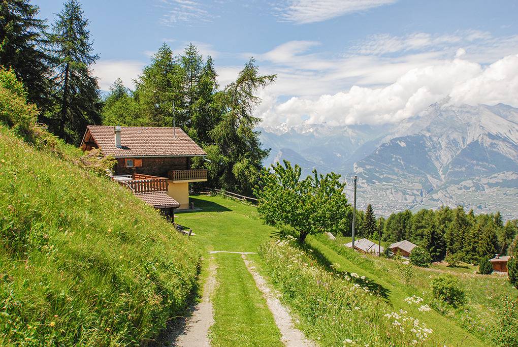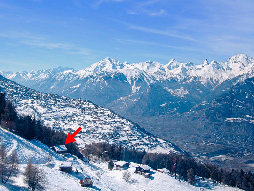 Ort: Veysonnaz. Herrlich ruhige Lage oberhalb des Ortes mit phantastischem Panoramablick ins Rhône-Tal. Vielfältige Wandermöglichkeiten beginnen in der Nähe des Hauses. Ortsmitte mit Restaurant 400 m. Supermarkt 1,8 km. Kantonshauptstadt Sion mit Geschäften, schöner Altstadt 15 km. Stausee Grand Dixence 20 km. Ausflugsziele Zermatt, Chamonix, Montreux am Genfer See und Bettmeralp mit Aletschgletscher jeweils nur 70-90 km.