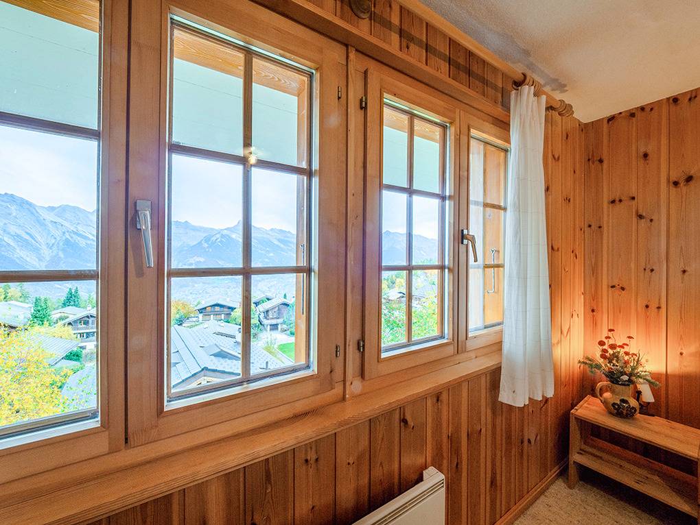 Ort: Nendaz. Ruhige Lage in einer Chalet-Siedlung in der Nähe der Ortsmitte. Herrlicher Blick auf Rhône-Tal und die Bergwelt des Berner Oberlandes. Ortsmitte mit Geschäften, Supermarkt, Restaurants, Eisbahn 500 m. Gondel zu Fuß 800 m, per Pkw 2 km. Skibus 150 m.