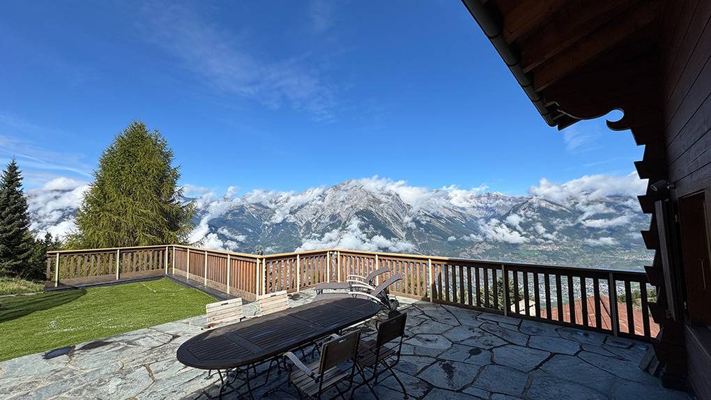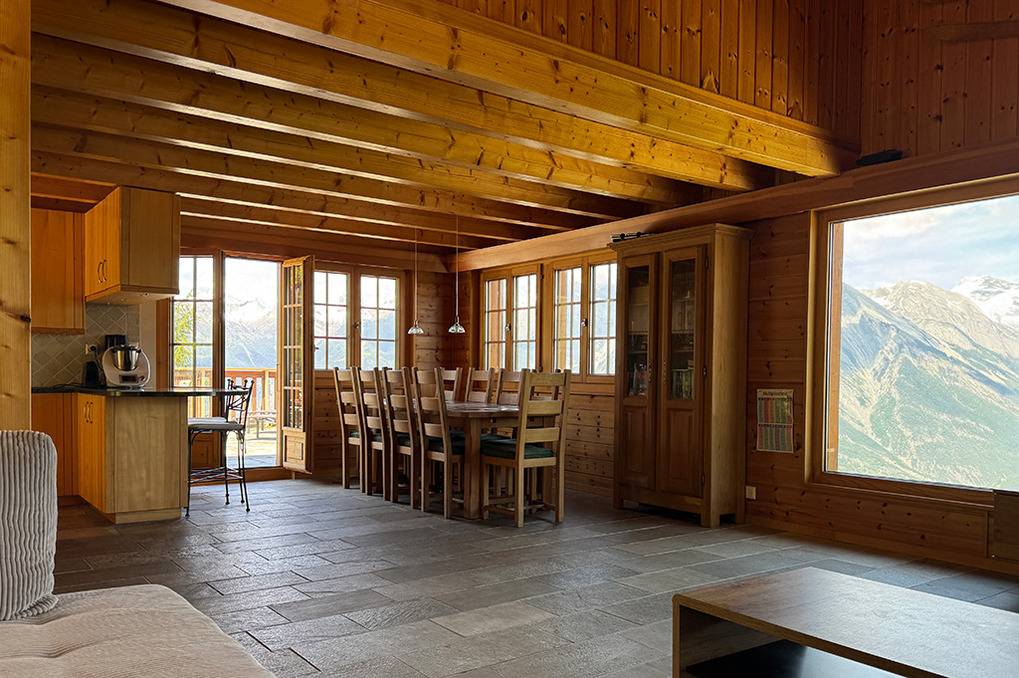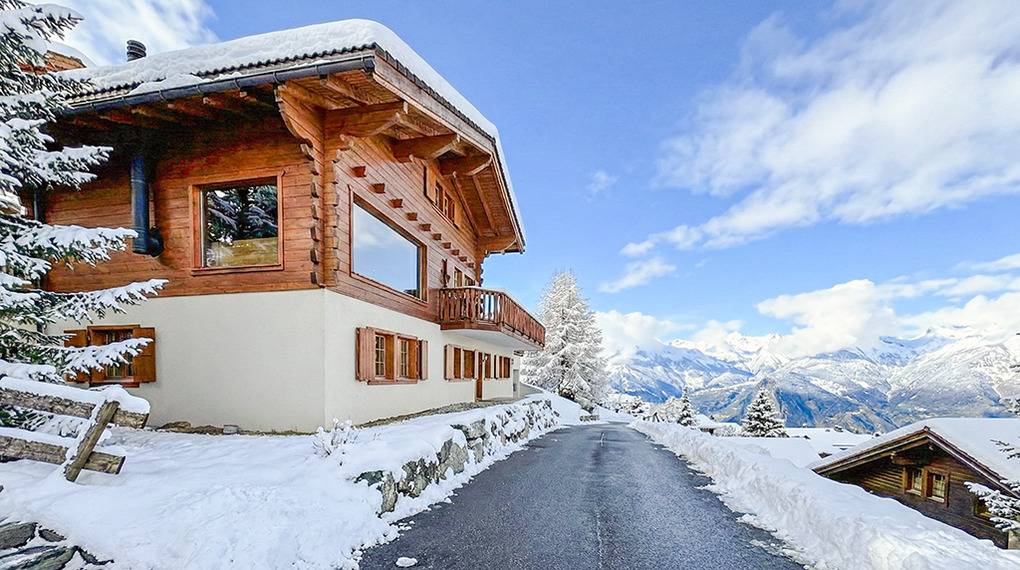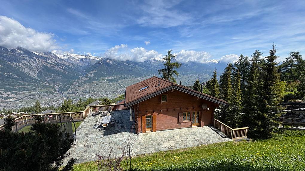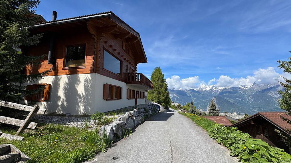 Ort: Nendaz. Top-Lage oberhalb des Ortes, in unmittelbarer Nähe der Talabfahrt. Skiabfahrt bis in Hausnähe. Ruhige Hanglage in einer Chalet-Siedlung, phantastischer Panoramablick ins Rhône-Tal. Pkw-Zufahrt nur mit guter Winterausrüstung (Allrad oder Schneeketten). 2 Pkw-Stellplätze in der Garage, 1-2 weitere Parkplätze davor. Ortsmitte zu Fuß 650 m, per Pkw 1,3 km.