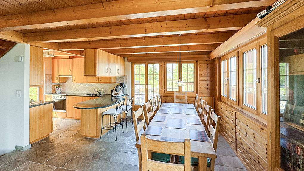 Haus: Schönes Komfort-Chalet mit Kaminofen und Billard. Sehr großzügiges 6-Zimmer-Haus mit ca. 250 qm Wohnfläche über 3 Etagen. 4 Schlafzimmer, 4 Bäder! Gehobene, sehr geschmackvolle Einrichtung. Großzügiger, teils bis in den Dachgiebel ausgebauter Wohnraum mit großen Panoramafenstern. Moderne Komfortausstattung. Internet über W-Lan. Handtuchwärmer in den Bädern. Waschmaschine. Gefrierschrank. Zentral-/Fußbodenheizung. Große Terrasse mit Sitzmöbeln. Große Garage für 2 Pkw, Skistellmöglichkeit. 2 weitere Pkw-Stellplätze vor der Garage.