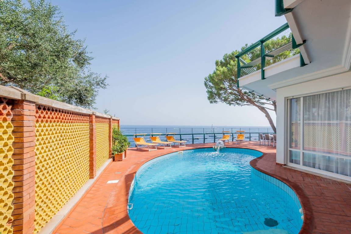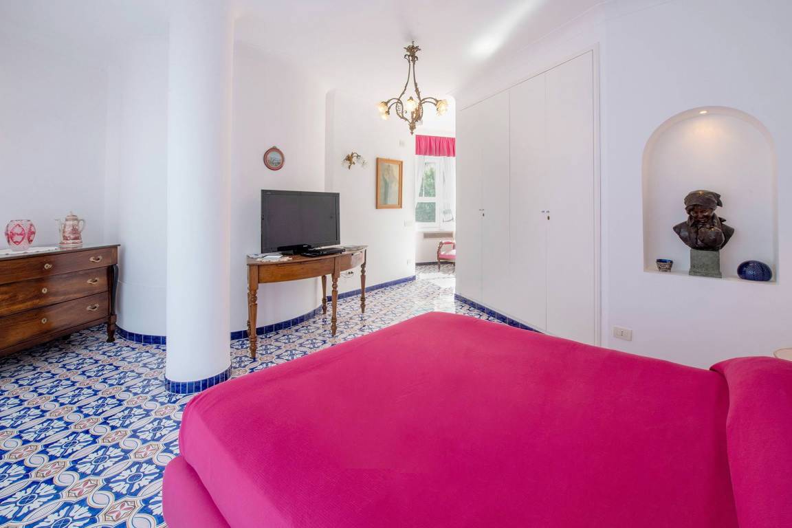 Die Villa Grazia umfasst 7 Schlafzimmer und 7 Bäder und bietet Platz für bis zu 14 Gäste auf mehreren Geschossen. Die Räume sind großzügig über die verschiedenen Ebenen verteilt und öffnen sich zu den Außenbereichen hin, wo ein privater Pool mit Panoramablick auf das Meer einlädt. Jedes Schlafzimmer ist zur Gewährleistung von Komfort und Privatsphäre für alle Gäste gestaltet.
