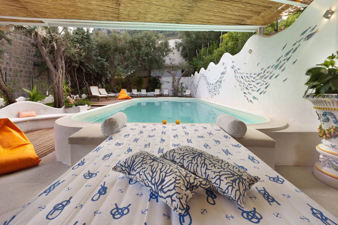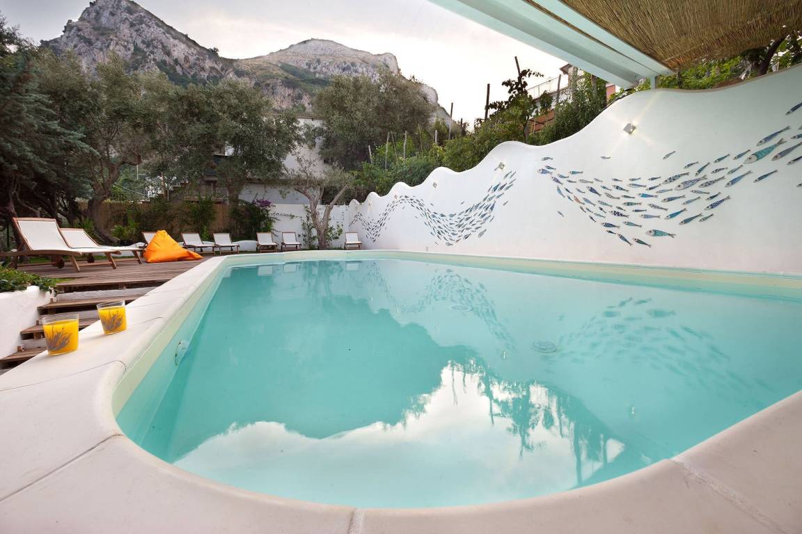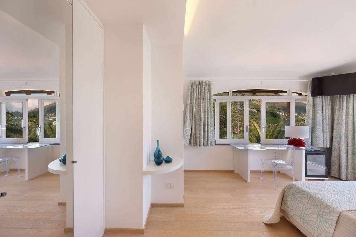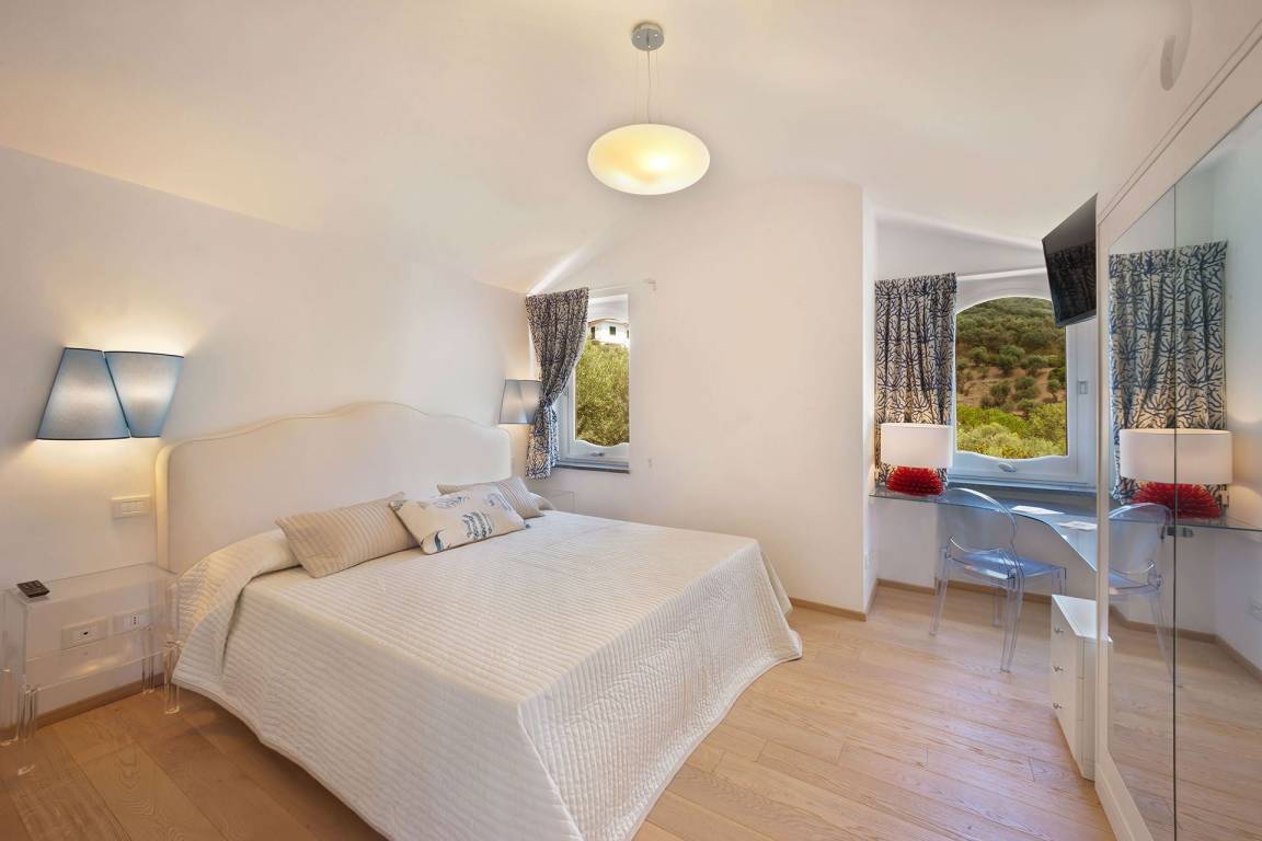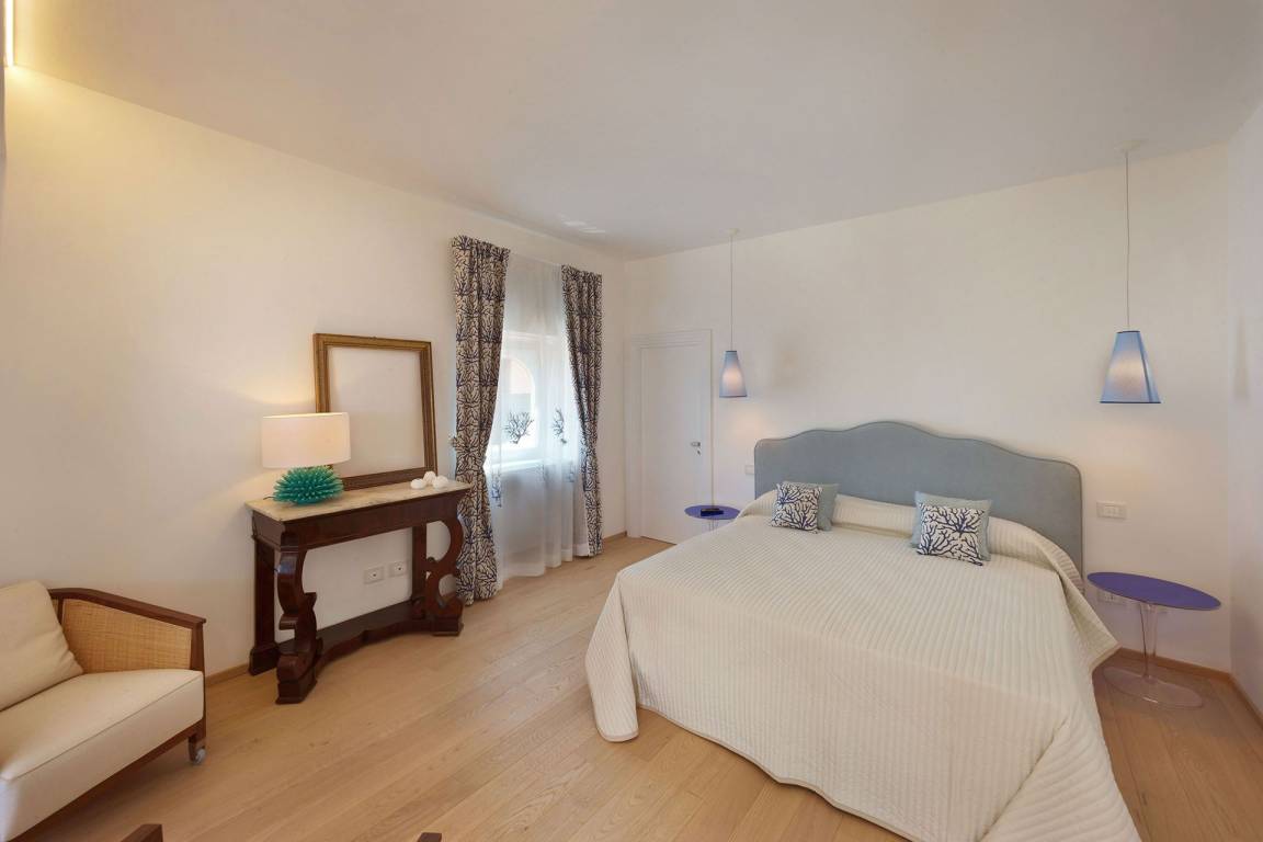 Die Villa delle Sirene umfasst 5 Schlafzimmer und 5 Bäder und bietet Platz für bis zu 10 Gäste auf mehreren Geschossen. Jedes Schlafzimmer ist auf Komfort und Privatsphäre ausgerichtet. Die 5 Bäder sind elegant ausgestattet und verteilen sich zweckmäßig auf die Schlafbereiche.