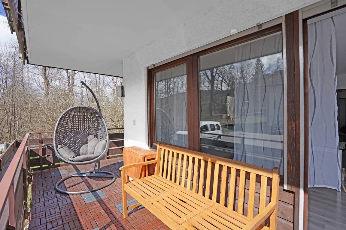 großzügiger, sonniger Balkon, mit Sitzmöbeln