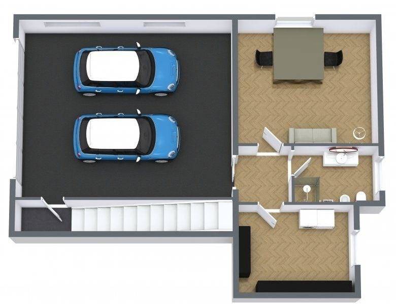 Im Untergeschoss befindet sich die Garage, ein Büro mit zwei Schreibtischen, Drehstühlen und Monitoren, die Sie gerne benutzen dürfen. Außerdem gibt es hier ein weiteres Duschbad mit WC, Bidget und Waschbecken sowie der Hauswirtschaftsraum mit Waschmaschine, Trockner, Wäscheständer und Bügelbrett.