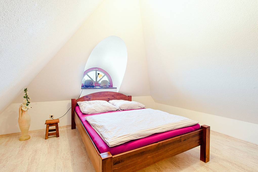 2. Etage mit Schrägen, offen zum Flur: Doppelzimmer.