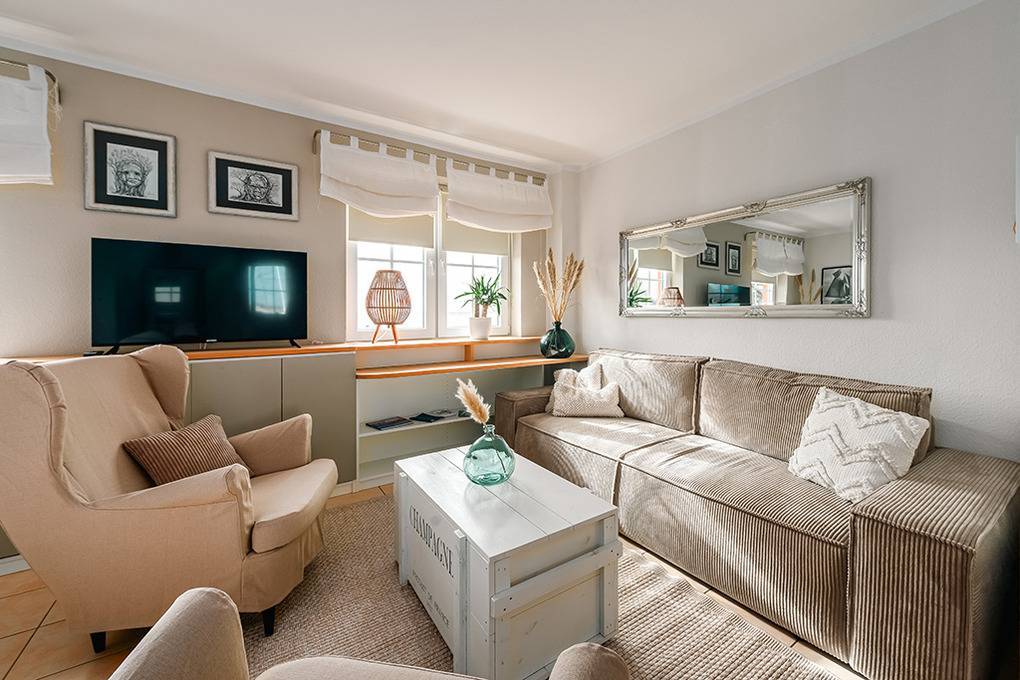 Nebenkosten Endreinigung 75 € (wird bei Buchung erhoben). Bettwäsche, Handtücher 25 € stellt Vermieter (wird bei Buchung erhoben). 1 Pkw-Stellplatz im Preis inklusive. Kostenloser Internetzugang über W-Lan. Haustier 15 €/Tag, max. 1 Hund (wird bei Buchung erhoben).Räume & Aufteilung
