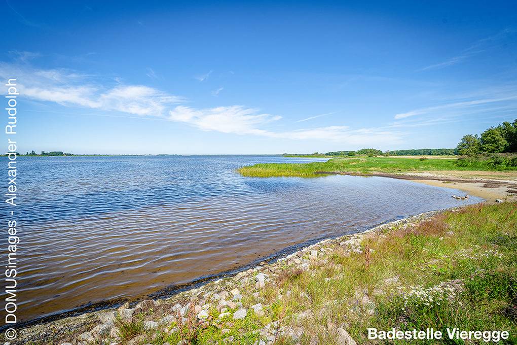 Ort: Vieregge. Hervorragende Lage direkt am Breetzer Bodden (20 m) im Nord-Westen der Insel Rügen. Badestelle Bodden 50 m. Yachthafen mit Hafenbistro (Brötchenservice), Bootsverleih, Kinderspielplatz. Kosmetikstudio mit Wellnessanwendungen. Ortsmitte Gingst mit Geschäften, Restaurants 12 km. Bergen mit Geschäften 20 km. Schöner Sandstrand an der Prorer Wiek, zwischen Binz und Sassnitz, 36 km. Schaprode mit Ausflugsschiffen 22 km.
