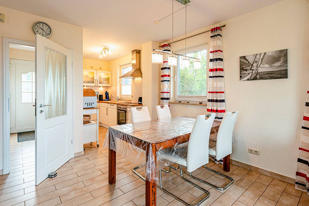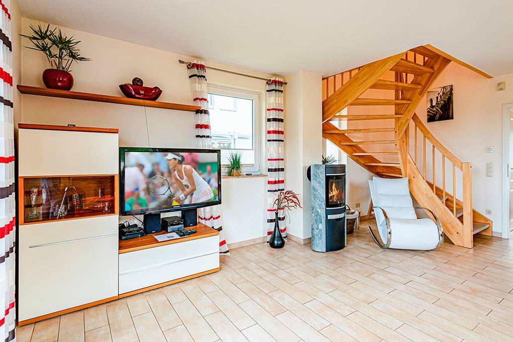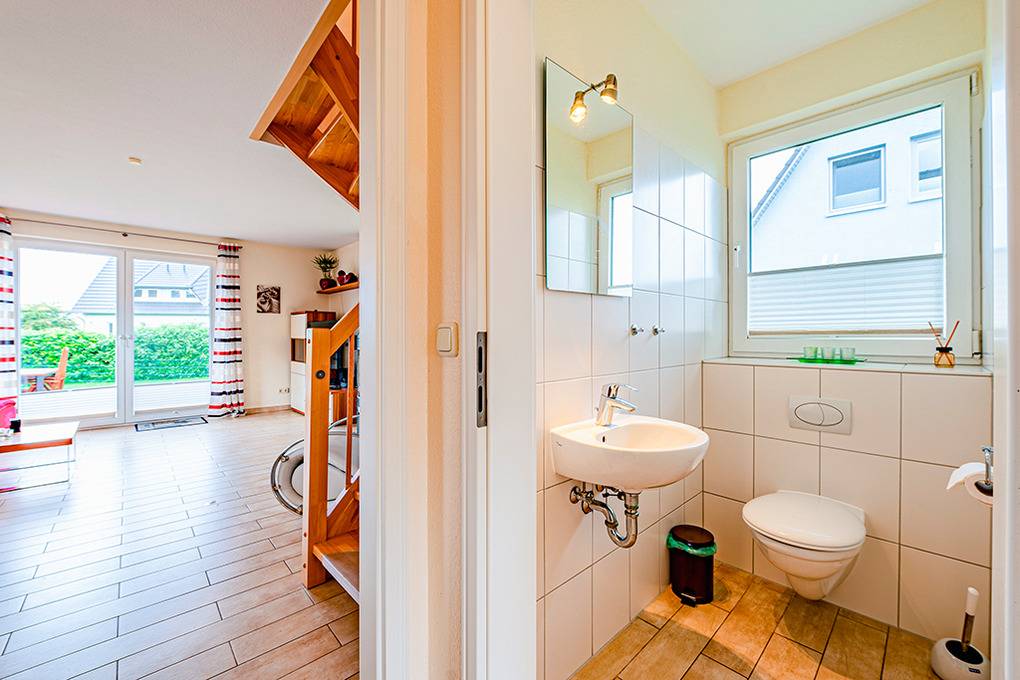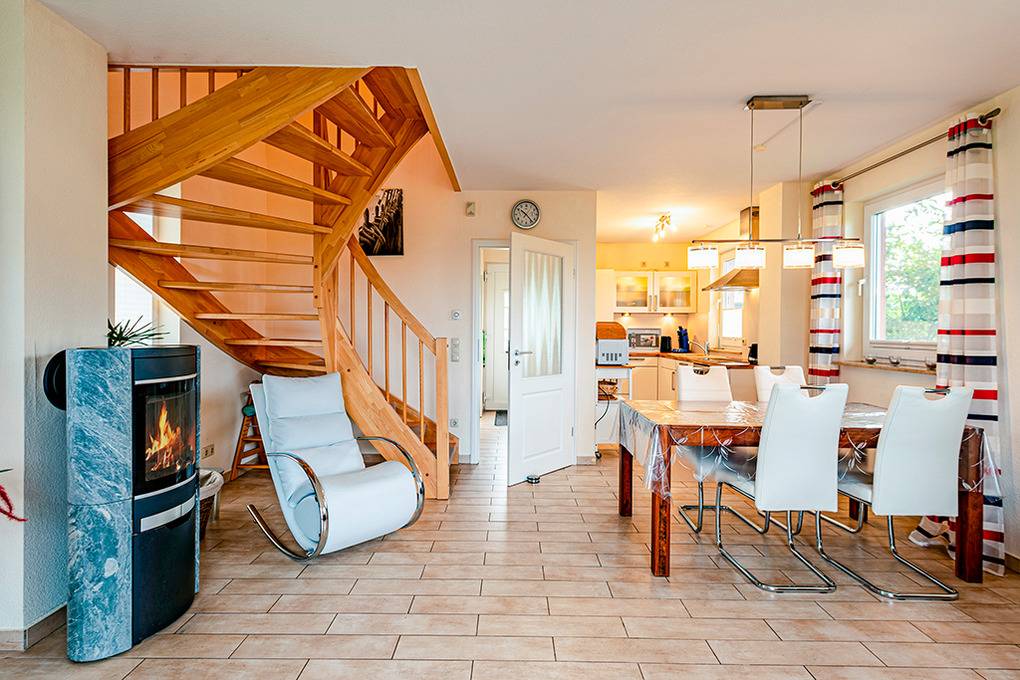 Nebenkosten: Strom, Wasser, Heizung 3 €/Pers/Tag (wird bei Buchung erhoben). Endreinigung 130 € (wird bei Buchung erhoben). Bettwäsche, Handtücher leihbar 23 €/Pers (Bestellung, wird bei Buchung erhoben). Zusätzliche Leistungen: Kostenloser Internetzugang über W-Lan. 2 Pkw-Stellplätze im Preis inklusive. Kaution 250 €. Kinder Babybett/Hochstuhl zusätzlich zur maximalen Personenzahl, jeweils ohne Berechnung. Haustier 28 €/Aufenthalt, max. 2 Hunde (Anmeldung, wird bei Buchung erhoben).Räume & Aufteilung