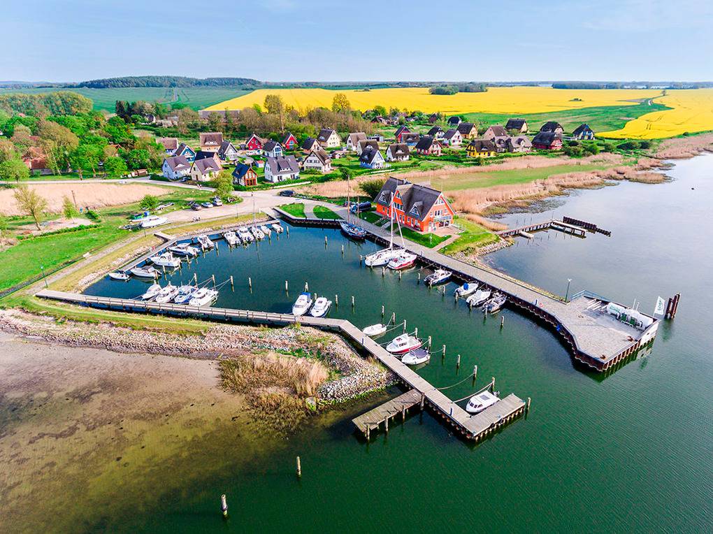 Ort: Vieregge. Hervorragende Lage direkt am Breetzer Bodden (50 m) im Nord-Westen der Insel Rügen. Naturbadestelle Bodden 200 m. Yachthafen mit Bistro (Brötchenservice), Kinderspielplatz. Kosmetikstudio mit Wellnessanwendungen. Ortsmitte Gingst mit Geschäften, Restaurants 12 km. Bergen mit Geschäften 20 km. Schöner Sandstrand an der Prorer Wiek, zwischen Binz und Sassnitz, 36 km. Schaprode mit Ausflugsschiffen 22 km.