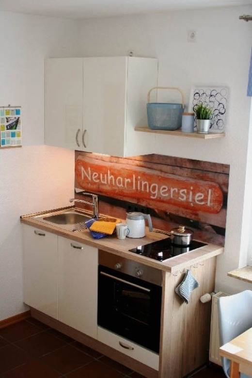 Küchenzeile mit 4- Platten-Ceranfeld, Backofen, Spülmaschine, Kühlschrank, Toaster, Wasserkocher, Eierkocher, Kaffeemaschine, Senseo - Kaffeepadmaschine