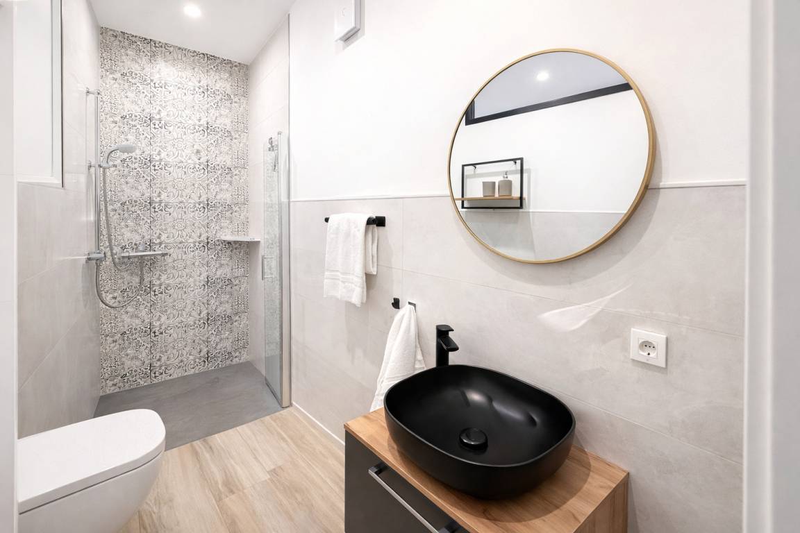 Das moderne Bad ist mit einer komfortablen Dusche und Föhn ausgestattet. Hier starten Sie frisch in den Tag oder entspannen nach einem langen Strandspaziergang.