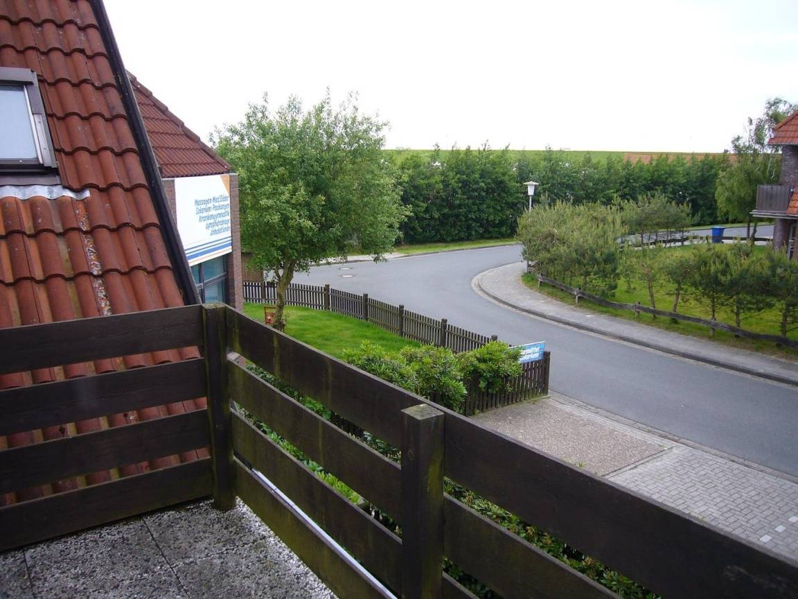 Genießen Sie die frische Nordseeluft auf dem Balkon, mit Blick auf denn Deich und die Nordsee dahinter.