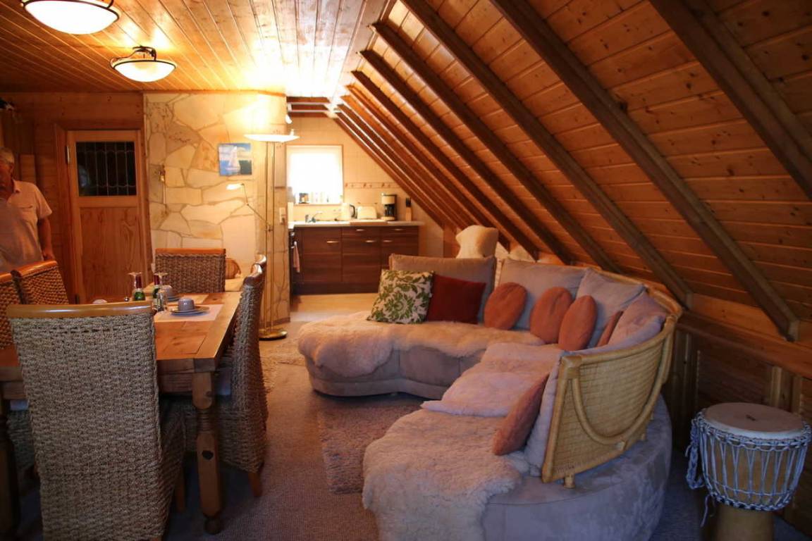 Unsere Ferienwohnung befindet sich in der ersten Etage des Ferienhauses. Mit seinen 70 Quardratmetern bietet die Wohnung genügend Raum für bis zu drei Personen. Neben einem Wohn-Schlafbereich verfügt die Wohnung über eine ausgesttattete offene Küche und einem Bad mit Badewanne.