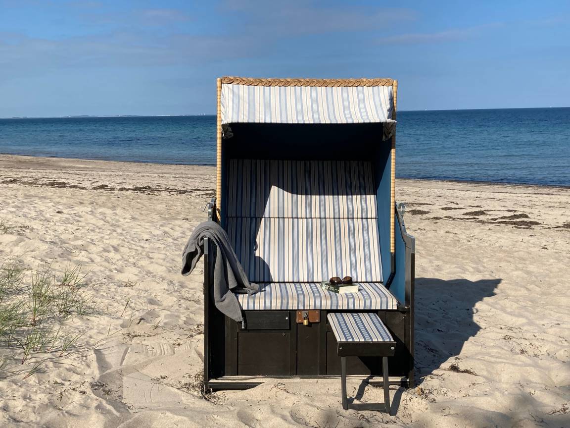 Im Wohnzimmer befindet sich außerdem ein Kaminofen, der an kälteren Tagen für Gemütlichkeit sorgt. Feuerholz stellen wir von Herbst bis Frühjahr kostenlos zur Verfügung. Direkt neben dem Wohnungseingang befindet sich eine eigene, möblierte Terrasse sowie ein sonniges Rasenstück inkl. Sonnenliegen, das gemeinsam mit der oberen Wohneinheit genutzt werden kann. Besonderes Highlight ist nicht nur die Nähe zum schönen Sandstrand (ca. 1.000m), sondern auch ein privater Strandkorb, der Ihnen für die Dauer Ihres Aufenthalts am Strand kostenlos zur Verfügung steht. Ebenfalls können Sie 3 Fahrräder und einen Bollerwagen ohne Berechnung nutzen.