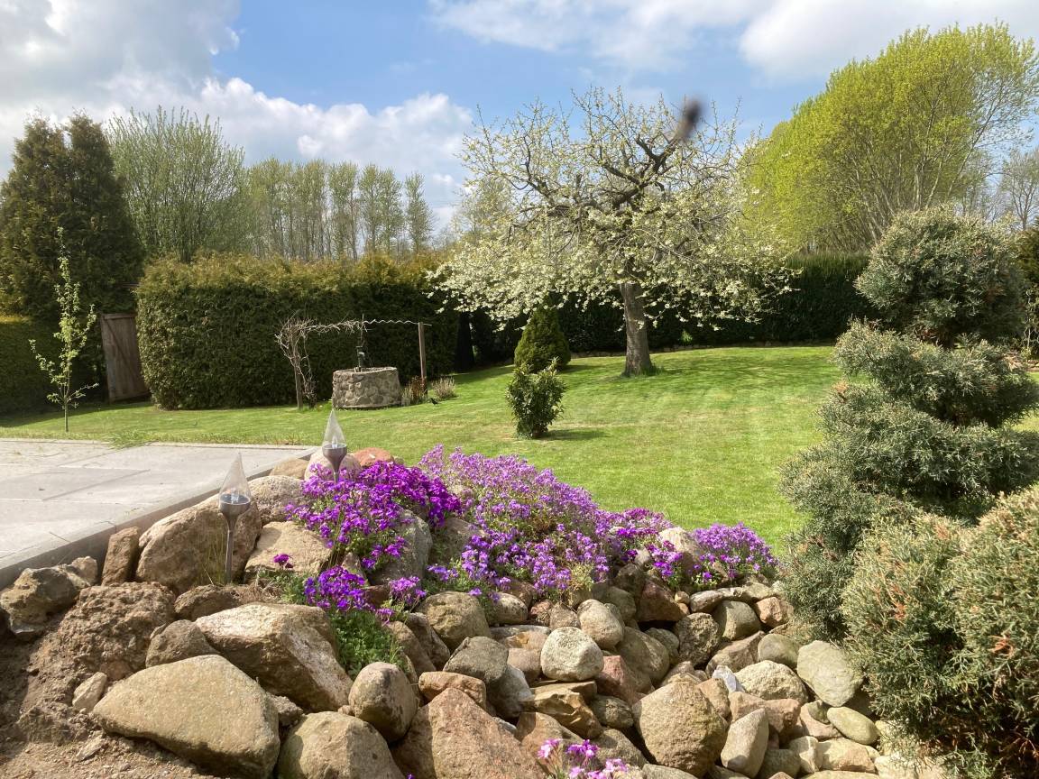 Es gibt 3 Schlafzimmer, die alle mit komfortablen Boxspringbetten ausgestattet sind. Ein Schlafzimmer ist mit einem 1,80m breiten Doppelbett ausgestattet, die anderen beiden Schlafzimmer verfügen über je 2 Einzelbetten, die bei Bedarf ebenfalls zu einem Doppelbett zusammen geschoben werden können. Auch tierische Familienmitglieder dürfen hier mit in den Urlaub - bis zu 3 Hunde sind willkommen. Besonderes Highlight - nicht nur für Kinder oder Hunde - ist der ca. 1.000 qm große, eingewachsene Garten, in dem man herrliche Sonnenuntergänge mit Blick auf Wiesen und den Dorfteich erleben kann. In der kalten Jahreszeit können Sie es sich vor dem Kamin gemütlich machen - Brennholz stellen wir kostenlos. Der kurtaxefreie Ostsee Sandstrand ist nur 1.300 m entfernt (ca. 15 Gehminuten), in weiteren 200m erreichen Sie den Hundestrand (von Oktober-März dürfen Hunde auch am Badestrand laufen).