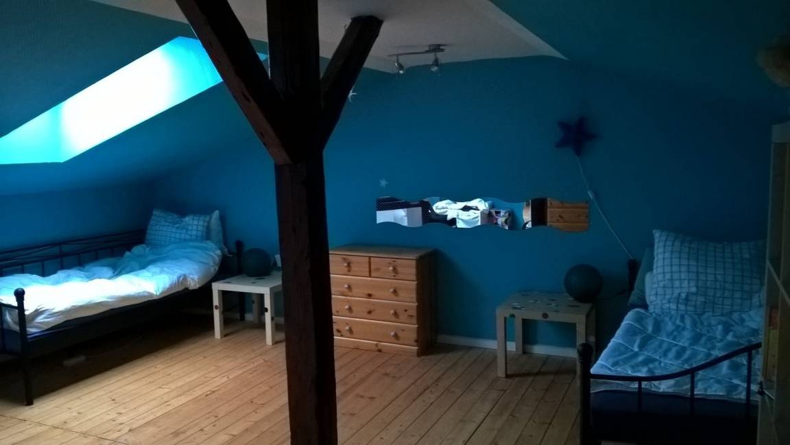 Das freundliche und helle Kinderzimmer liegt im 1. Stock und ist mit fast 30m² so großzügig bemessen, dass sich Ihre Kinder beim Spielen richtig ausbreiten können. Playmobil, Lego und diverse Kinderbücher sind bereits vorhanden und können gerne benutzt werden. In den3 gemütlichen Betten (90 x 200 cm) werden Ihre Kinder gut schlafen. Bei Bedarf stehen ein weiteres Jugendbett (ca. 165 x 75 cm) sowie ein Klappbett (ca. 80 x 190 cm) zur Verfügung. Bei Bedarf steht auch ein Baby-Reisebett (ohne Bettzeug) zur Verfügung.