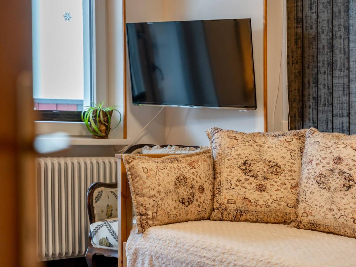 Souterrain: Fernsehzimmer mit TV, Sitzecke , Badezimmer mit Dusche, Waschbecken, Toilette , Saunaraum
