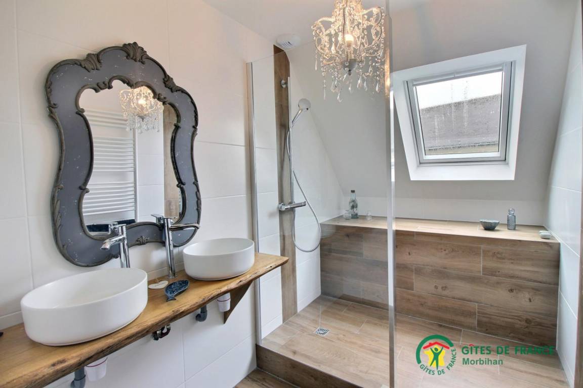 - Im Obergeschoss: 3 Schlafzimmer (3 Betten 140 x 190 cm), zwei Duschbäder und 2 WCs.