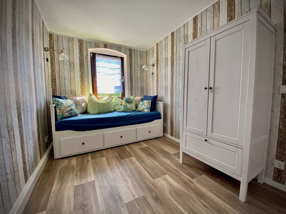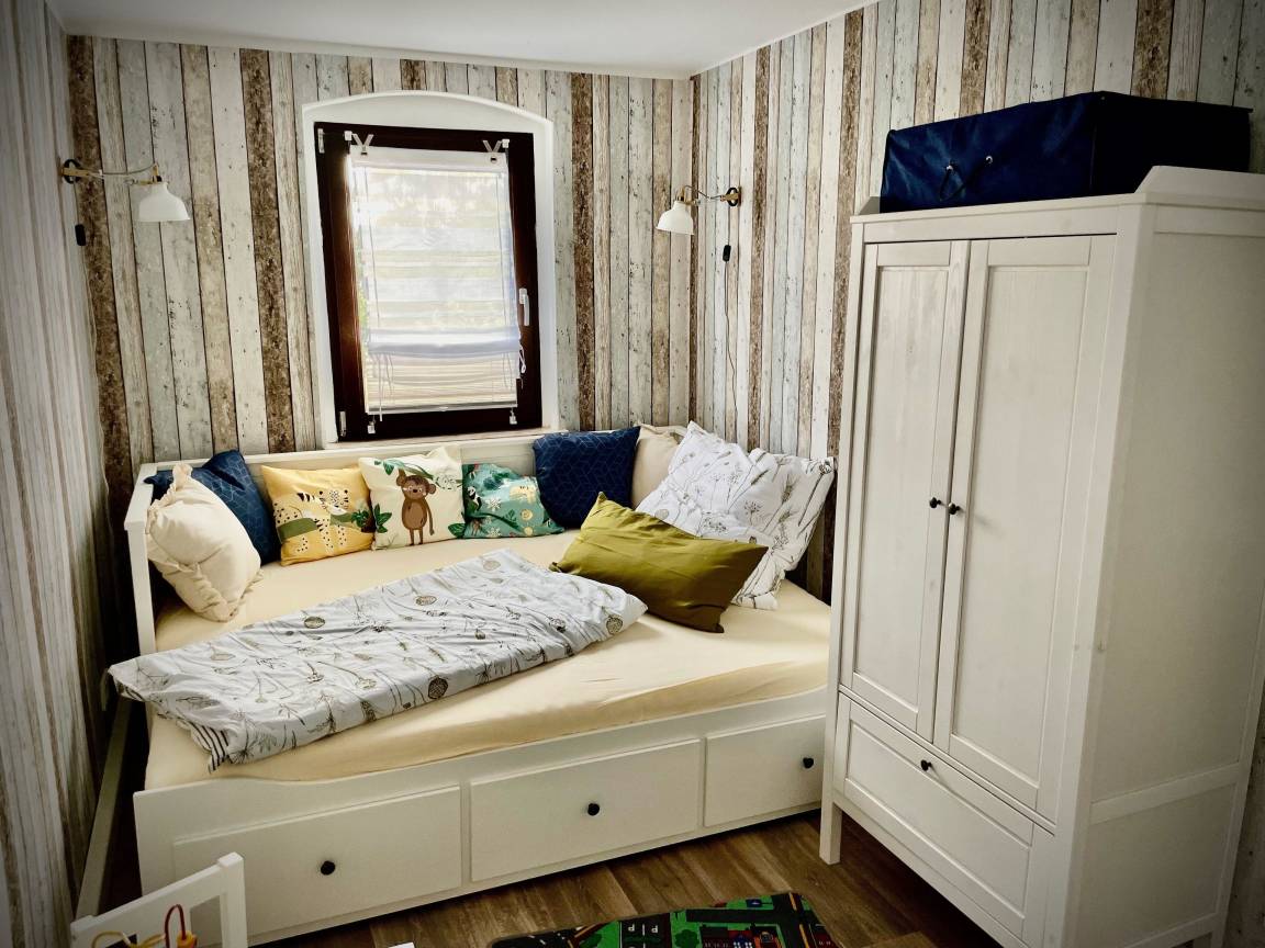 Ein zusätzliches Gäste- bzw. Kinderzimmer bietet 2 weitere Schlafplätze. Weiterhin steht ein zusätzliches Kinderbett bereit. Es stehen Kindermöbel zur Verfügung und eine Auswahl an Spielzeugen.