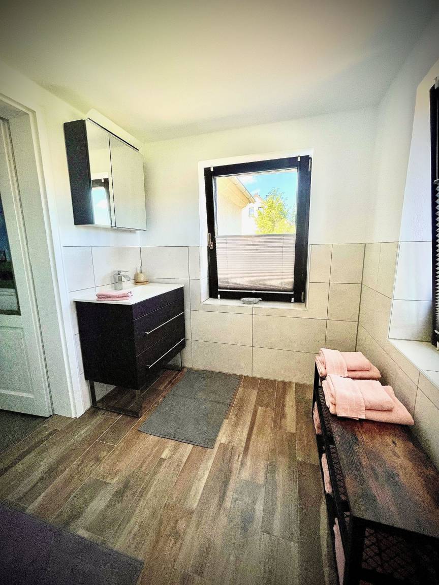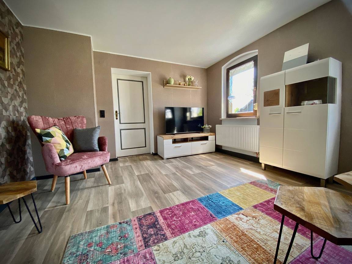 Eine ländlich gelegene Ferienwohnung mitten im Grünen. Die 80qm große Wohnung liegt im 1. OG. Unsere moderne Ferienwohnung lädt sie zu einem vielseitigen Urlaub ein. Die umfangreiche Ausstattung mit Liebe zum Detail lässt keine Wünsche offen.
