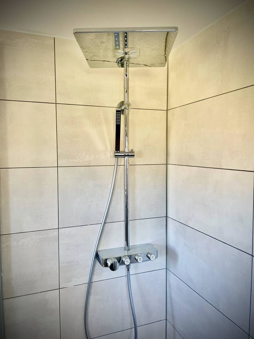 Das Tageslichtbad ist mit einer Dusche ausgestattet.