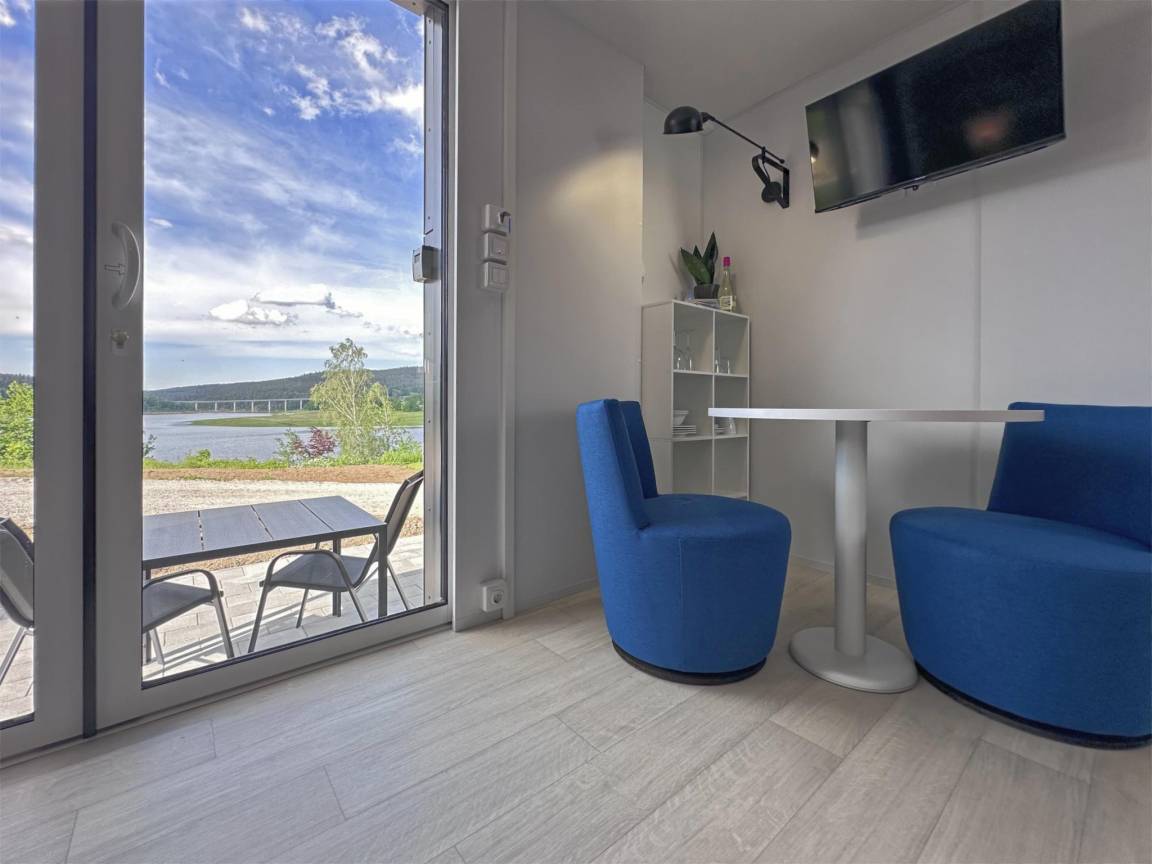 Hausbeschreibung : Willkommen im ruhig gelegenen, kleinen Feriendorf Seeblick am Ufer des Eixendorfer Sees im Herzen des Oberpfälzer Waldes. Dieses moderne Chalet ist ideal für einzelne Personen oder Paare, die Komfort und Privatsphäre schätzen. Genieße den hellen Wohn- Schlafbereich mit vollausgestatteter Küche sowie eine eigene Terrasse mit Grill, Gartenmöbeln und Sonnenliegen. Perfekt für entspannte Tage am See – jetzt buchen und Erholung in Bayern sichern!