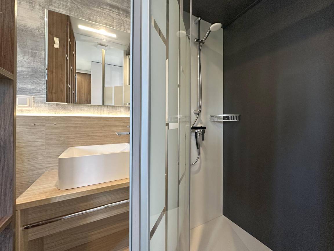 Layout : Parterre: offene Küche mit Wasserkocher, Toaster, Kochherd, Dunstabzugshaube, Kaffeemaschine(Filter), Backofen(mini), Mikrowelle, Geschirrspüler, Kühlschrank(+ Gefrierfach) , Wohn/Esszimmer mit TV(Flatscreen, Satellit, smart TV), Esstisch(4 Personen) , Schlafzimmer mit Badezimmer mit Doppelbett(Zwei Einzelbettdecken, 160 x 200 cm), Waschbecken, Dusche(Kabine), Toilette , Schlafzimmer mit Badezimmer mit Einzelbett(Bettdecke, 80 x 190 cm), Einzelbett(Bettdecke, 80 x 190 cm), Waschbecken, Dusche(Kabine), Toilette