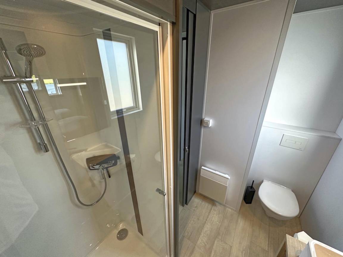 Layout : Parterre: offene Küche mit Wasserkocher, Toaster, Kochherd, Dunstabzugshaube, Kaffeemaschine(Filter), Backofen(mini), Mikrowelle, Geschirrspüler, Kühlschrank(+ Gefrierfach) , Wohn/Esszimmer mit TV(Flatscreen, Satellit, smart TV), Esstisch(6 Personen) , Schlafzimmer mit Etagenbett(Bettdecke) , Schlafzimmer mit Badezimmer mit Doppelbett(Zwei Einzelbettdecken, 160 x 200 cm), Waschbecken, Dusche(Kabine), Toilette , Schlafzimmer mit Badezimmer mit Einzelbett(Bettdecke, 80 x 190 cm), Einzelbett(Bettdecke, 80 x 190 cm), Waschbecken, Dusche(Kabine), Toilette