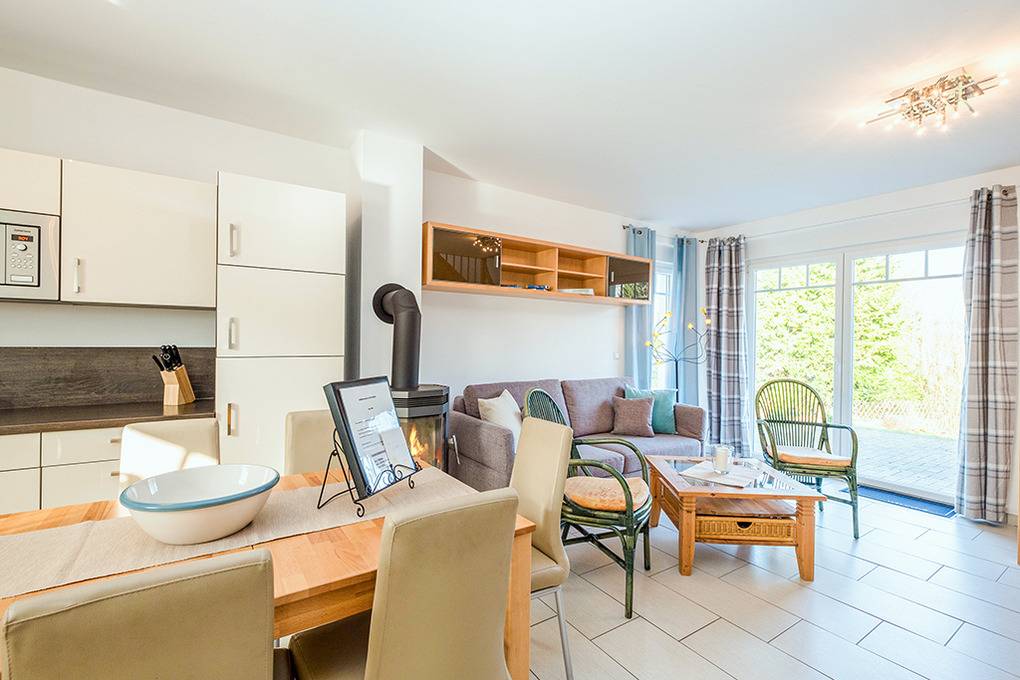 Haus: Komfortables Ferienhaus mit Kaminofen. Geschmackvolle, ansprechende Einrichtung. Internetzugang über W-Lan. Fußbodenheizung. Schöne Terrasse mit Sitzmöbeln, Grill. Fahrradschuppen. 2 Pkw-Stellplätze.