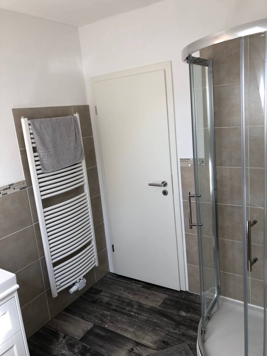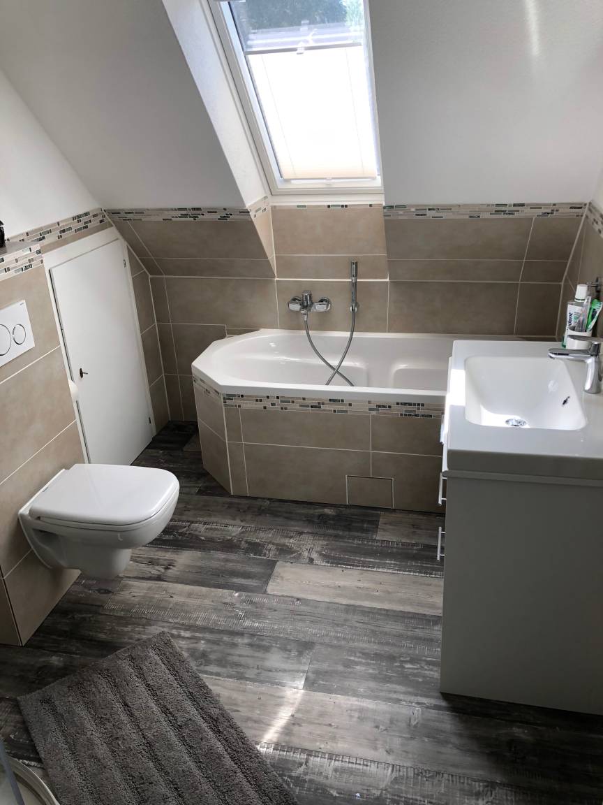 Da in jeder Etage ein Badezimmer mit Dusche und Toilette (im Obergeschoss zusätzlich auch mit Badewanne) zur Verfügung steht und das Bad im Keller über eine Tür nach außen verfügt, kann man nach dem Saunagang ohne weiteres einen kurzen Spaziergang durch den nicht einsehbaren Garten unternehmen, ehe man gemütlich im Whirlpool (vielleicht mit einem Glas Wein) den Abend ausklingen lassen kann.