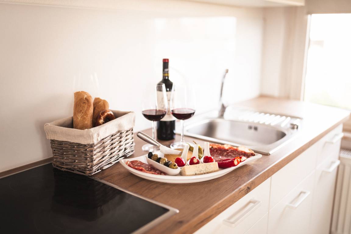Sehr geehrte Damen und Herren,gegen Aufpreis bieten wir einen Brötchenservice an. Hier bekommen Sie Brötchen, Getränke, etc direkt an die Haustür geliefert. Ebenso bieten wir unseren "Sekt-Starter" (59€) an. Dieser beinhaltet eine Flasche Winzersekt, eine kleine Käseauswahl und frisches Baguette.