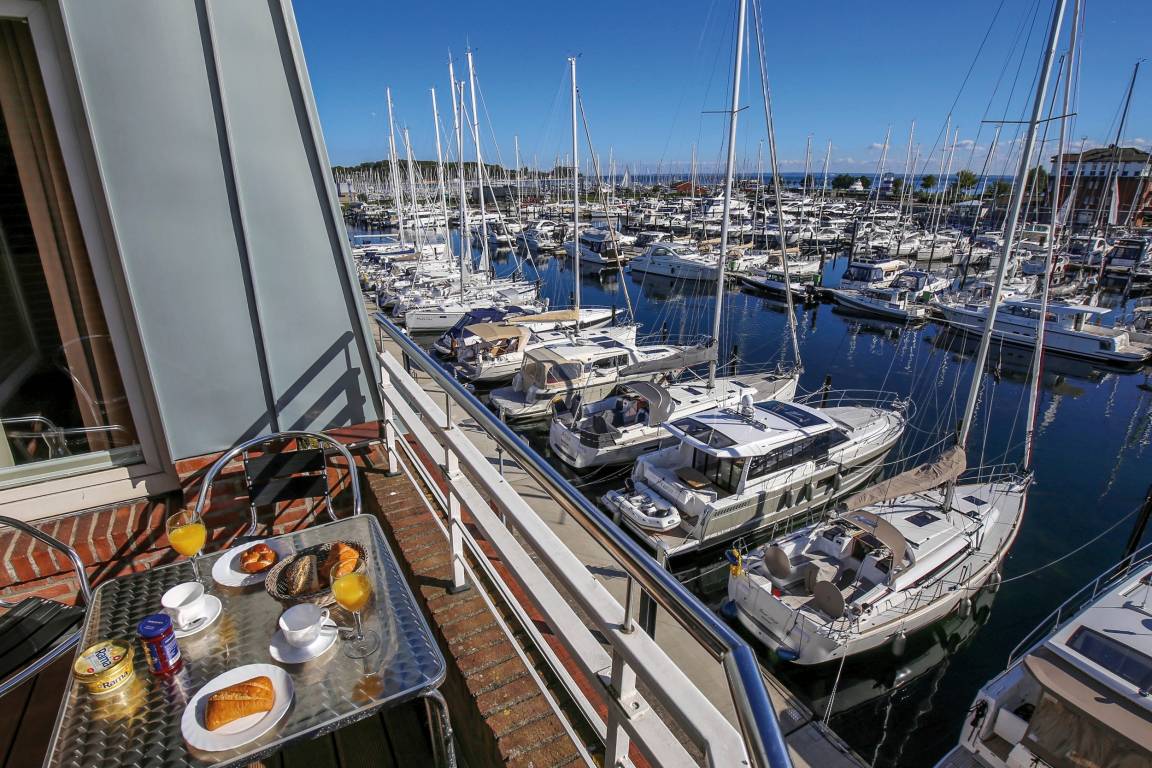 Balkon mit Blick über den Yachthafen und Ostsee: Sitzgarnitur