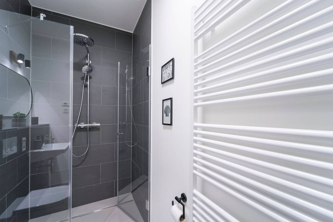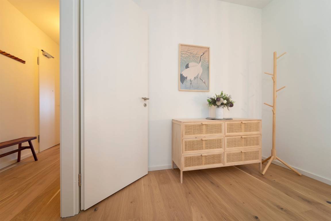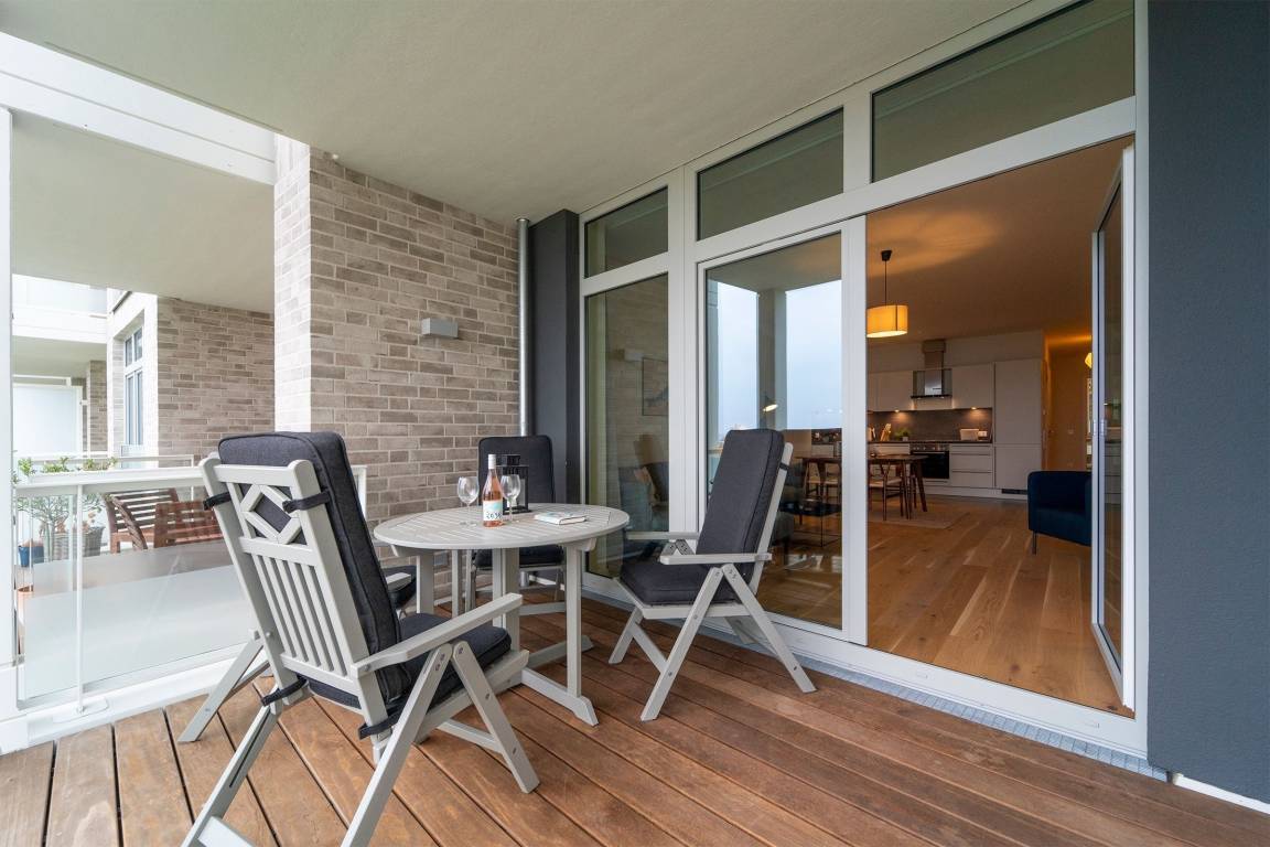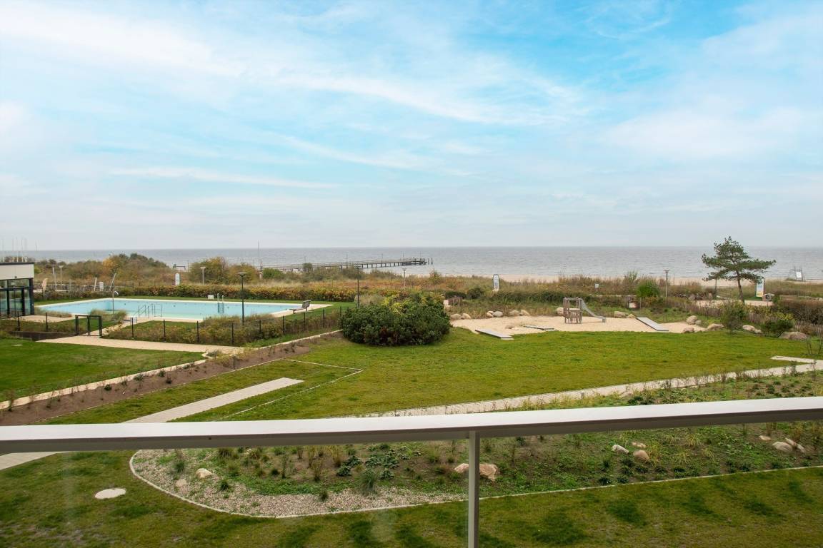 Hier werden Sie sich wohlfühlen! Modern und hell begrüßt Sie das Herzstück der Wohnung - der große, offene Wohnraum mit integrierter, voll ausgestatteter Küche lädt Sie zu einer Auszeit ein. Vom überdachten, möblierten Balkon in Südausrichtung haben Sie freie Sicht auf die Ostsee. Schlafen und entspannen Sie sich im separaten Schlafzimmer mit bequemem Boxspringbett (2x 90x200cm) und Kleiderschrank. Ein zweites Schlafzimmer mit zwei Einzelbetten (je 90x200 cm) sorgt ebenfalls für ruhige Nächte. Außerdem sorgen gleich zwei hochwertig ausgestattete Badezimmer mit bodengleicher Dusche für Entschleunigung am Morgen - eines davon sogar mit Badewanne.