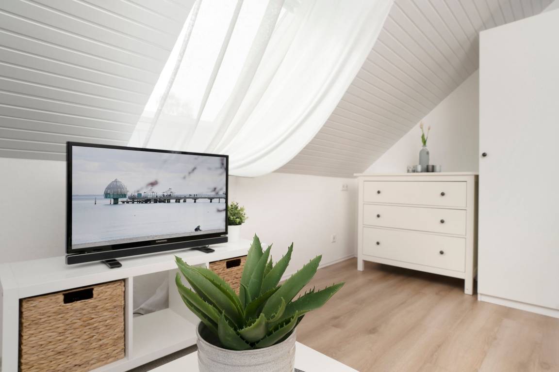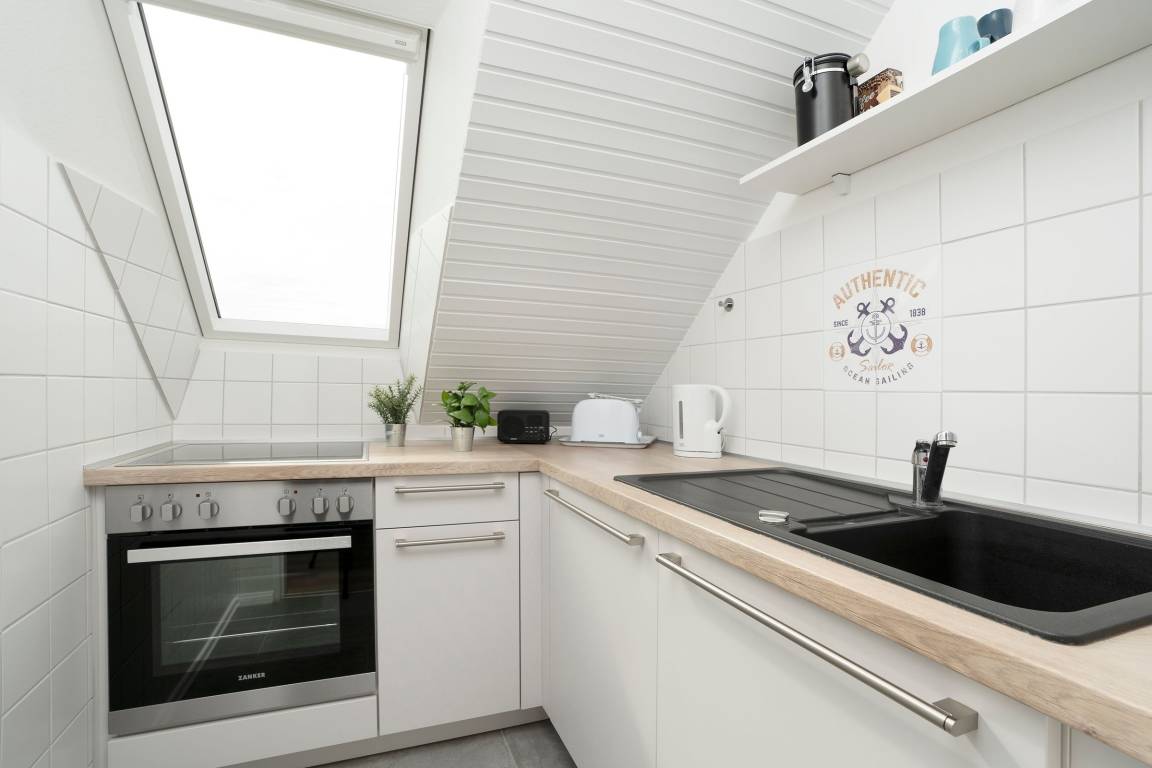 „Eine schön dekorierte kleine Dachgeschosswohnung, modern eingerichtet. In 3 min bei Nahkauf, in 5 min am Strand.“