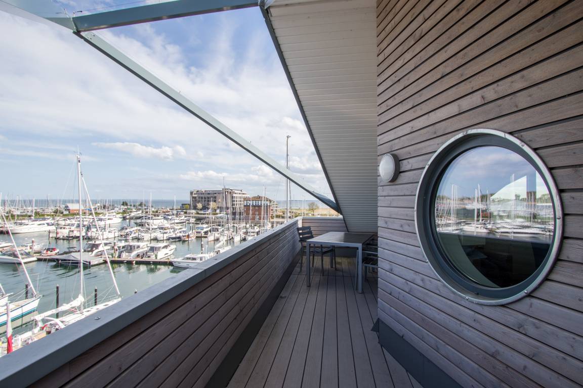 Ostbalkon: Blick über die Ostsee und den Yachthafen, Sitzgarnitur