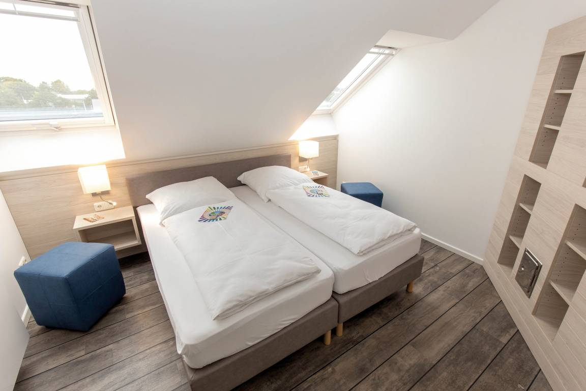 Über die komplette 3. Etage bieten Ihnen 125 m² Wohnfläche den Komfort, den Sie sich für einen erholsamen und einmaligen Urlaub wünschen. Drei Schlafräume für insgesamt 6 Personen, jeweils mit Doppelbett eingerichtet, bieten Ihnen mit Boxspringbetten den Schlafkomfort, der Ihren Urlaub so geruhsam macht. In einem Schlafzimmer finden Sie für den kleinsten Nachwuchs einen Wickeltisch. Vom Elternschlafzimmer aus haben Sie direkten Zugang zum westlichen Balkon sowie zum Saunabereich.