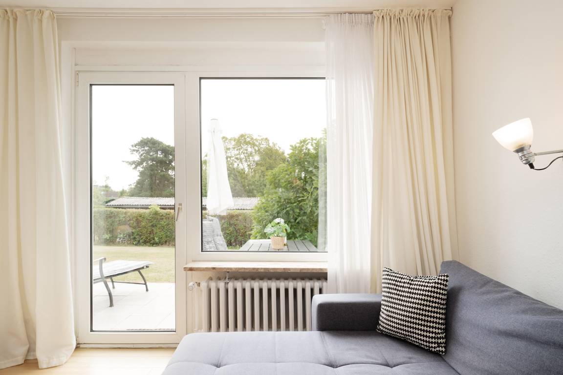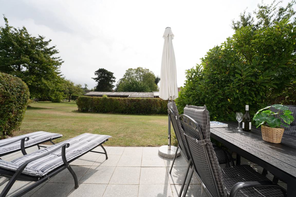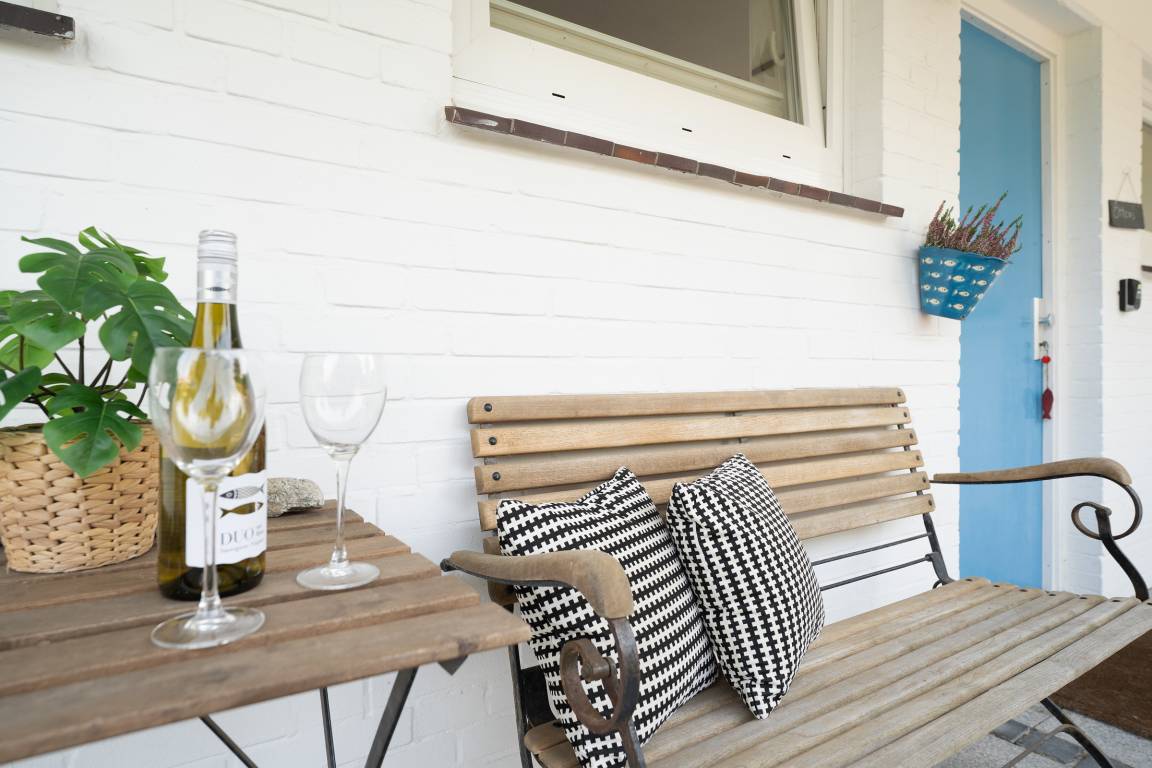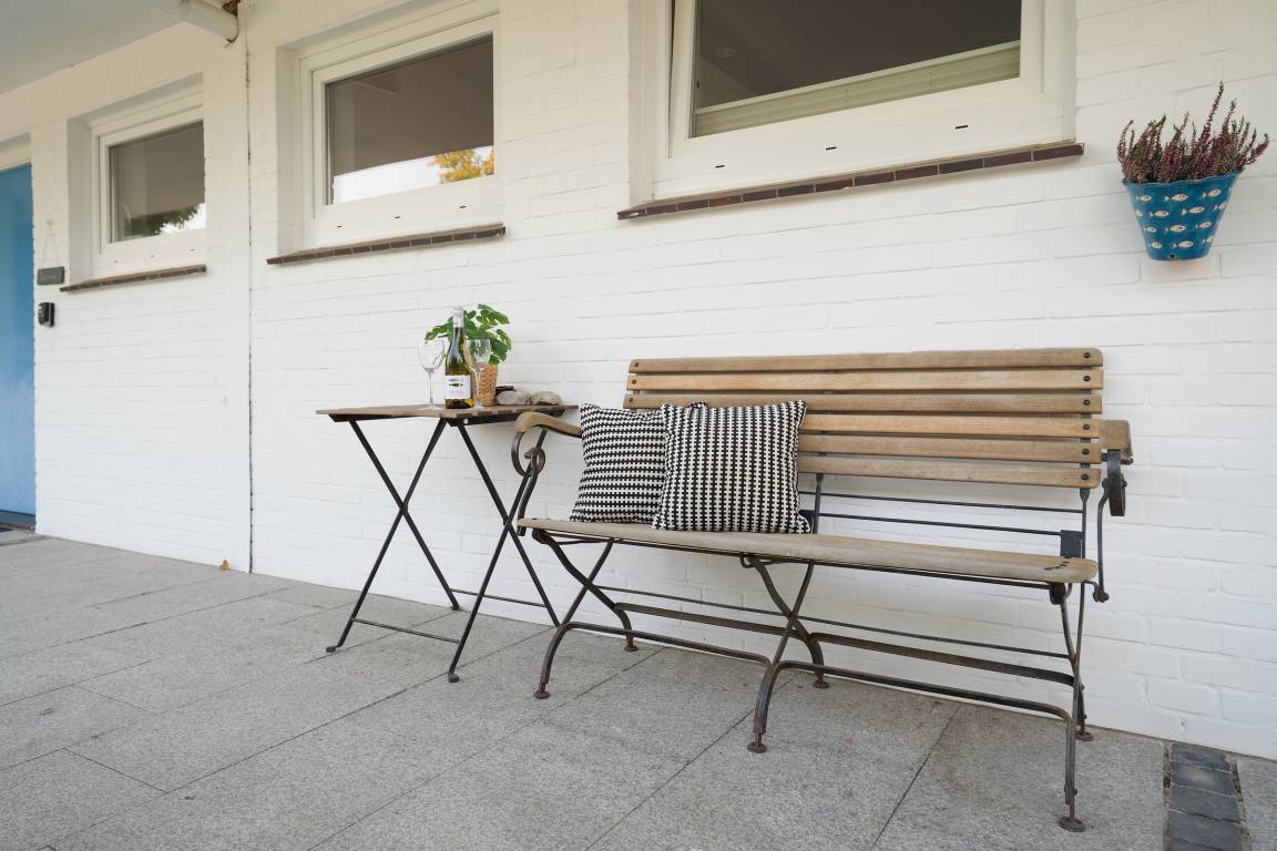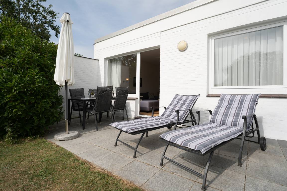 Im gemütlichen Wohnbereich erwartet Sie ein Sofa, ein Flachbildfernseher, für entspannte Stunden in Kreise der Liebsten. Von hier aus gelangen Sie direkt auf die Terrasse, die mit 12 m² Platz zum Entspannen bietet. Dank der Südwest-Ausrichtung genießen Sie hier die Sonne bis in die Abendstunden – ein Holzkohlegrill steht für gesellige Grillabende bereit.