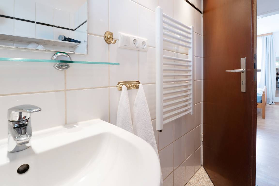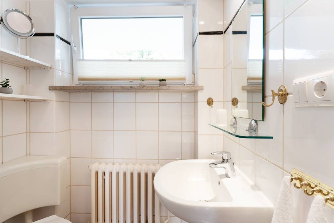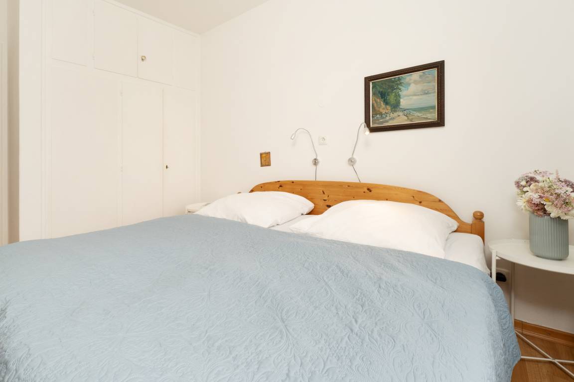 Die Wohnung verfügt über zwei Schlafzimmer, die jeweils mit einem komfortablen Doppelbett eingerichtet sind und somit erholsame Nächte garantieren. Das moderne Badezimmer bietet eine Dusche (Einstiegshöhe 24 cm), WC, Haartrockner, Kosmetikspiegel sowie einen beheizbaren Handtuchhalter.