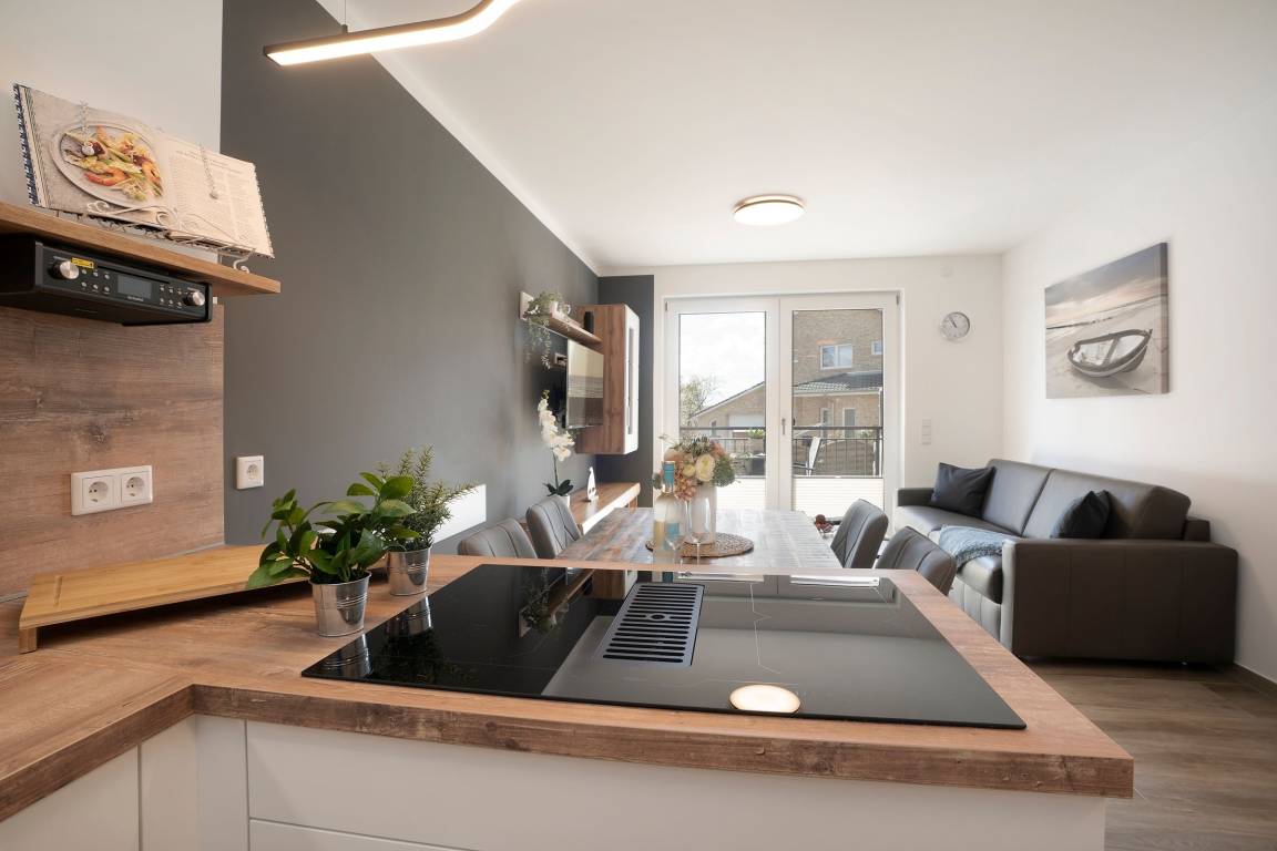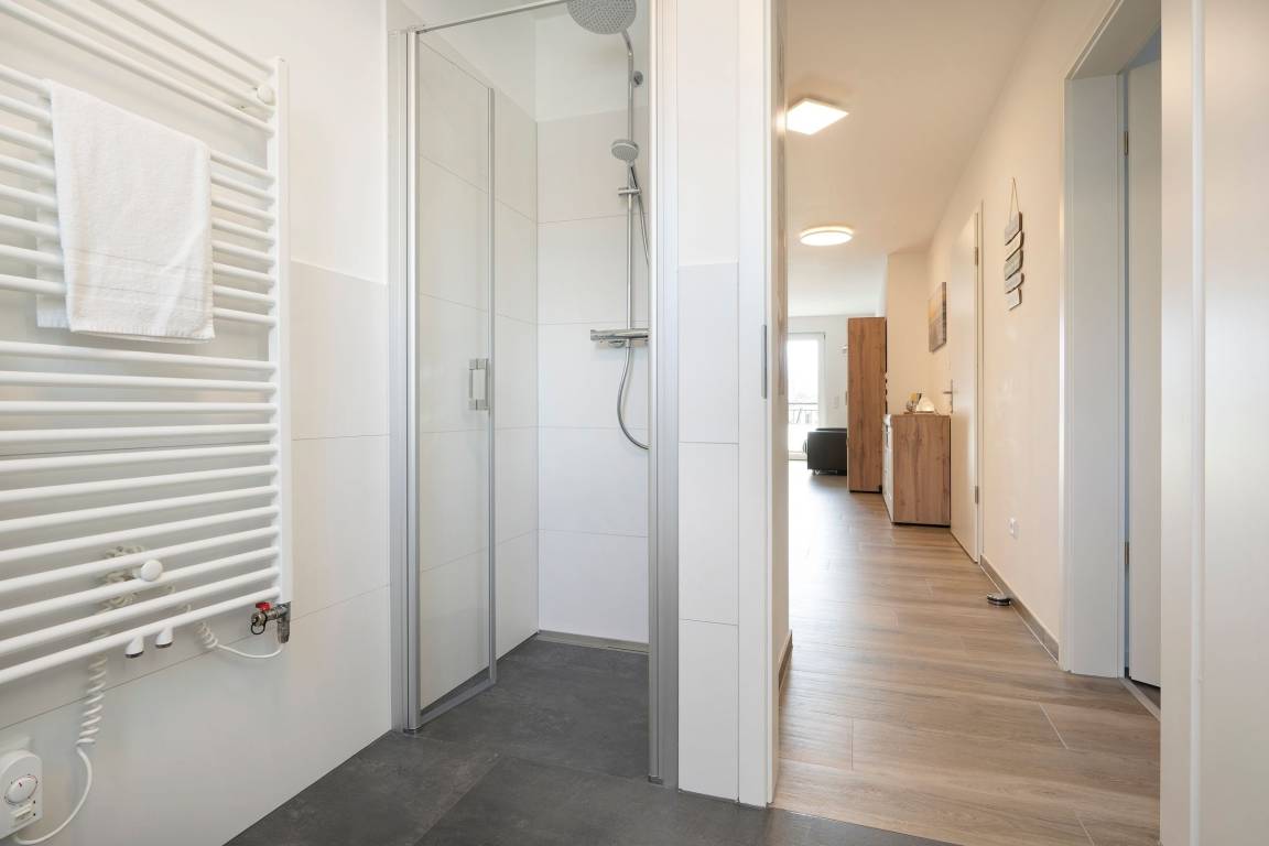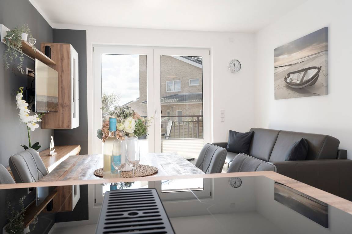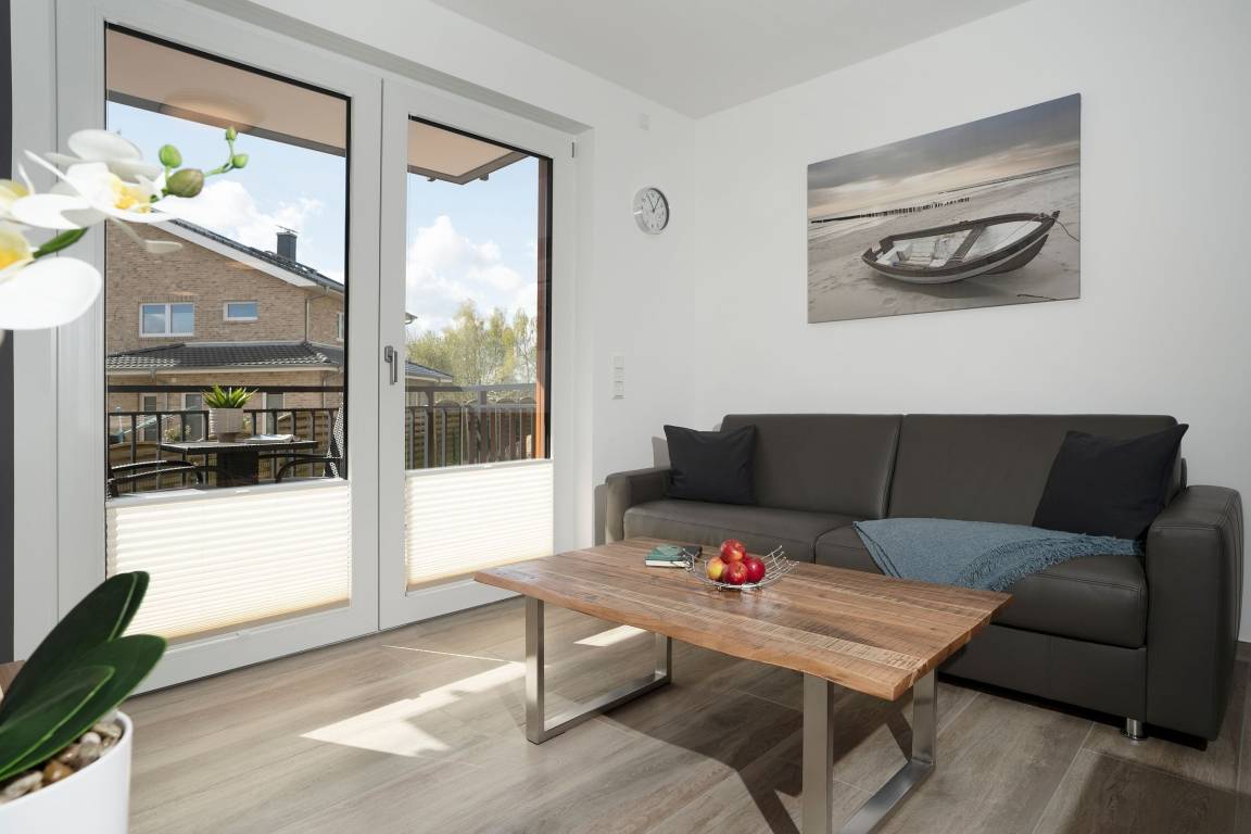 Es empfängt Sie ein mit hochwertigen Möbeln ausgestatteter Wohnbereich mit Flat-TV und funktioneller Schlafcouch - bis zu 2 Personen können das Sofa bei Bedarf als gemütlichen Schlafplatz (160x200 cm) nutzen. Im separaten Schlafzimmer, das mit einem Doppelbett (2x 90x200 cm) und einem Kleiderschrank zum Verstauen Ihrer Urlaubsgarderobe ausgestattet ist, verbringen Sie ruhige und erholsame Nächte. Am nächsten Morgen sorgt das tageslichthelle Bad mit einer erfrischenden Morgendusche für den gelungenen Start in den neuen Tag. Die Fußbodenheizung sorgt für eine angenehme Wärme in der kälteren Jahreszeit, alle Räume lassen sich durch Außenjalousien und Plissees angenehm abdunkeln.