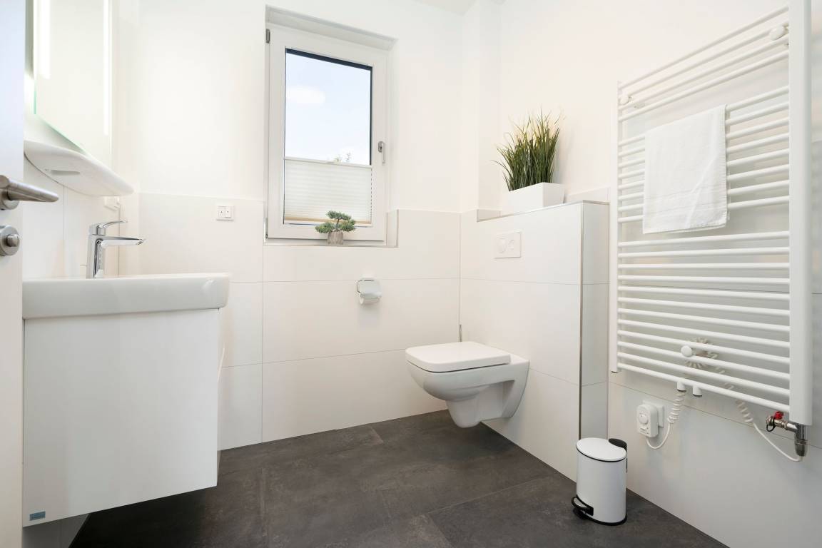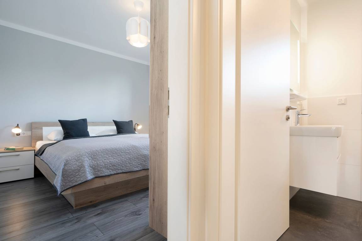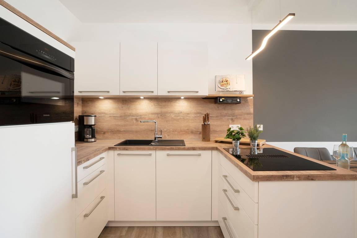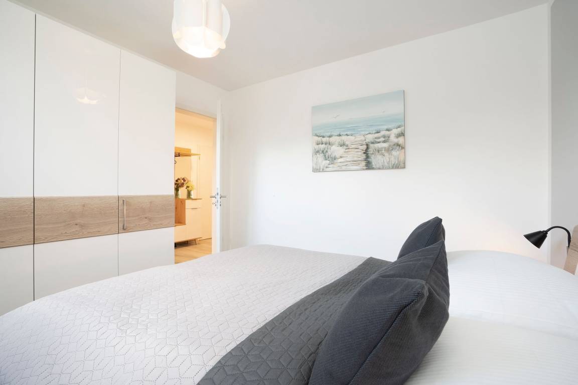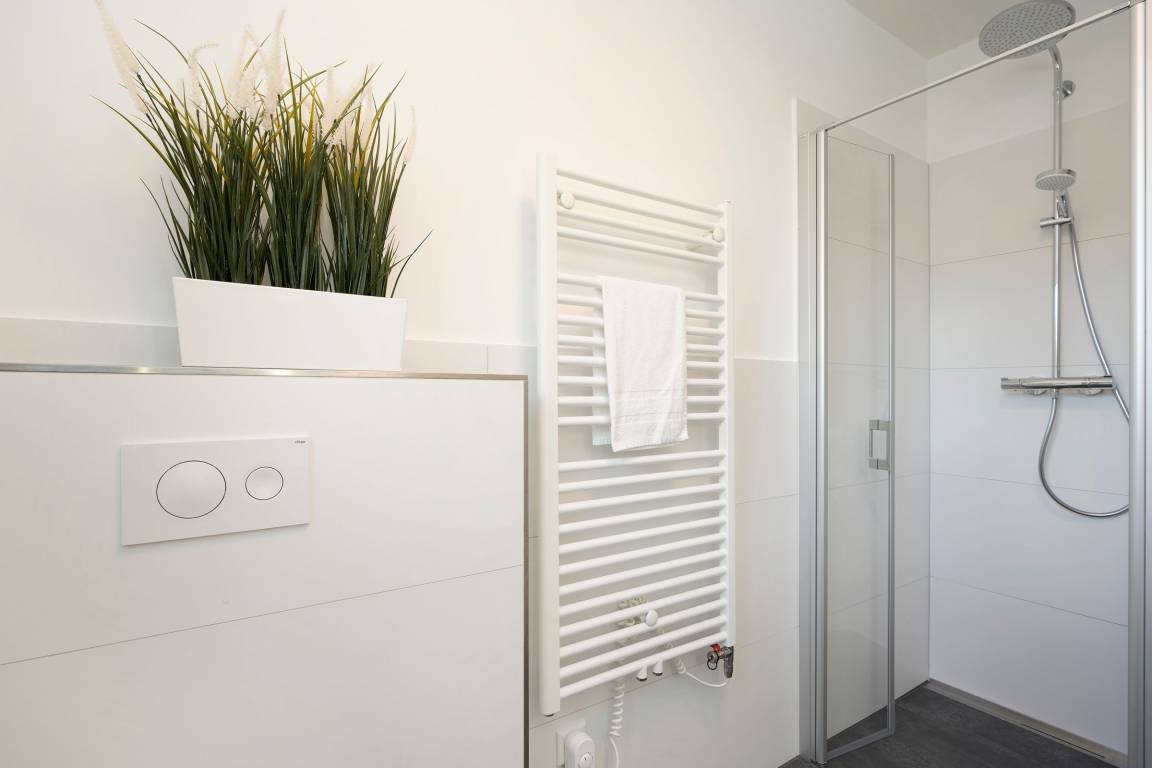 Es empfängt Sie ein mit hochwertigen Möbeln ausgestatteter Wohnbereich mit Flat-TV und funktioneller Schlafcouch - bis zu 2 Personen können das Sofa bei Bedarf als gemütlichen Schlafplatz (160x200 cm) nutzen. Im separaten Schlafzimmer, das mit einem Doppelbett (2x 90x200 cm) und einem Kleiderschrank zum Verstauen Ihrer Urlaubsgarderobe ausgestattet ist, verbringen Sie ruhige und erholsame Nächte. Am nächsten Morgen sorgt das tageslichthelle Bad mit einer erfrischenden Morgendusche für den gelungenen Start in den neuen Tag. Die Fußbodenheizung sorgt für eine angenehme Wärme in der kälteren Jahreszeit, alle Räume lassen sich durch Außenjalousien und Plissees angenehm abdunkeln.