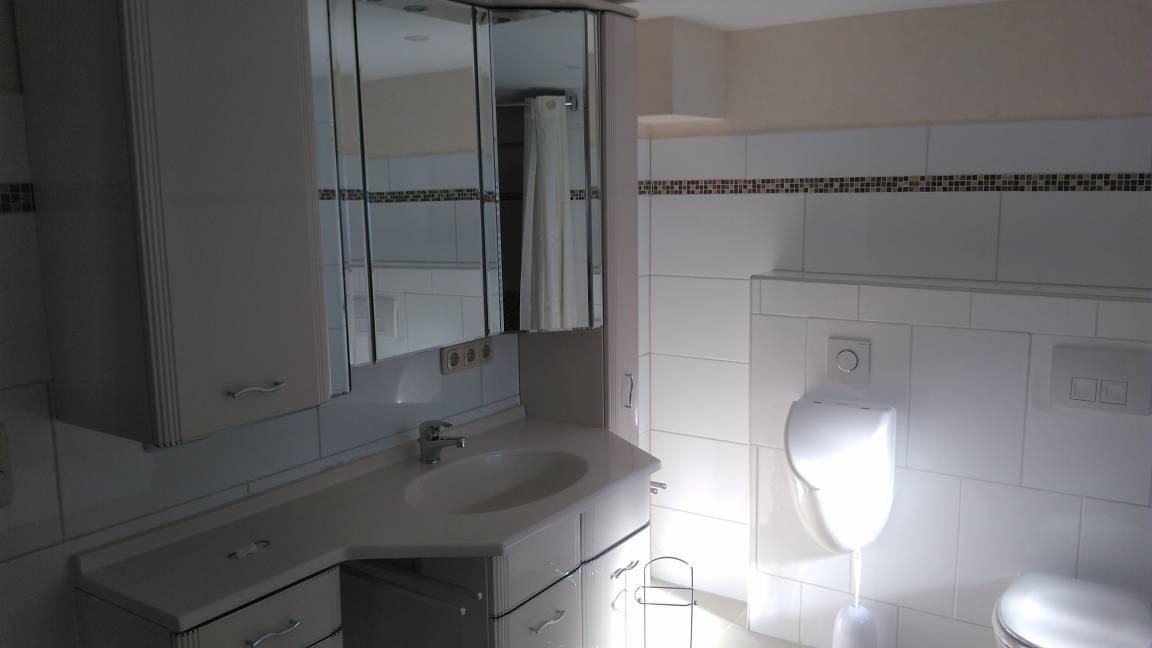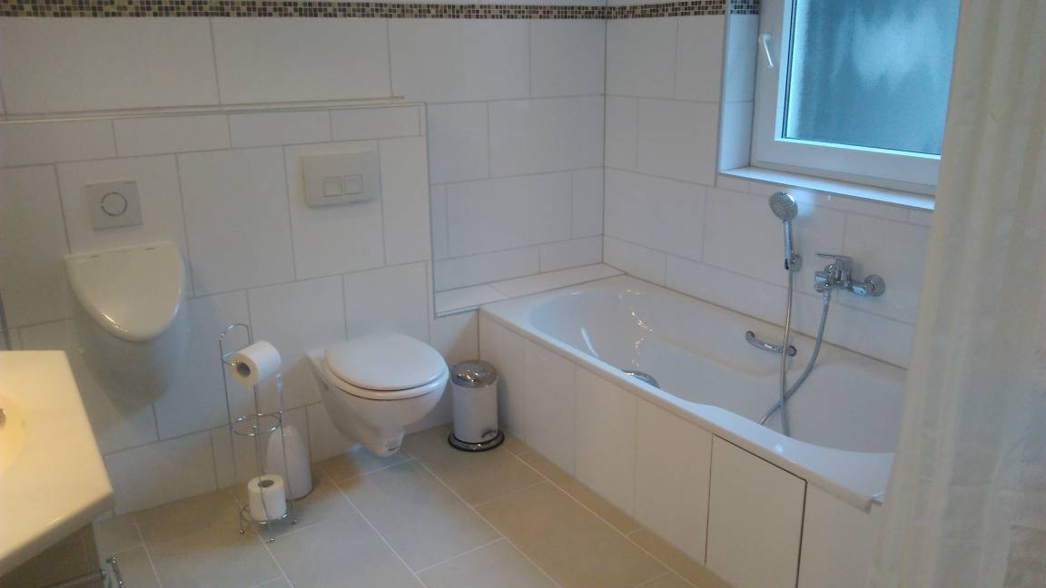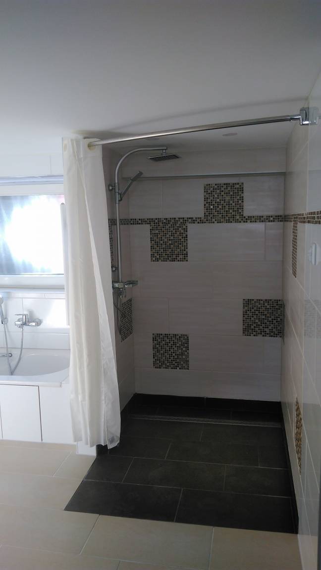 Bad mit bodentiefer, breiter Dusche und Badewanne
