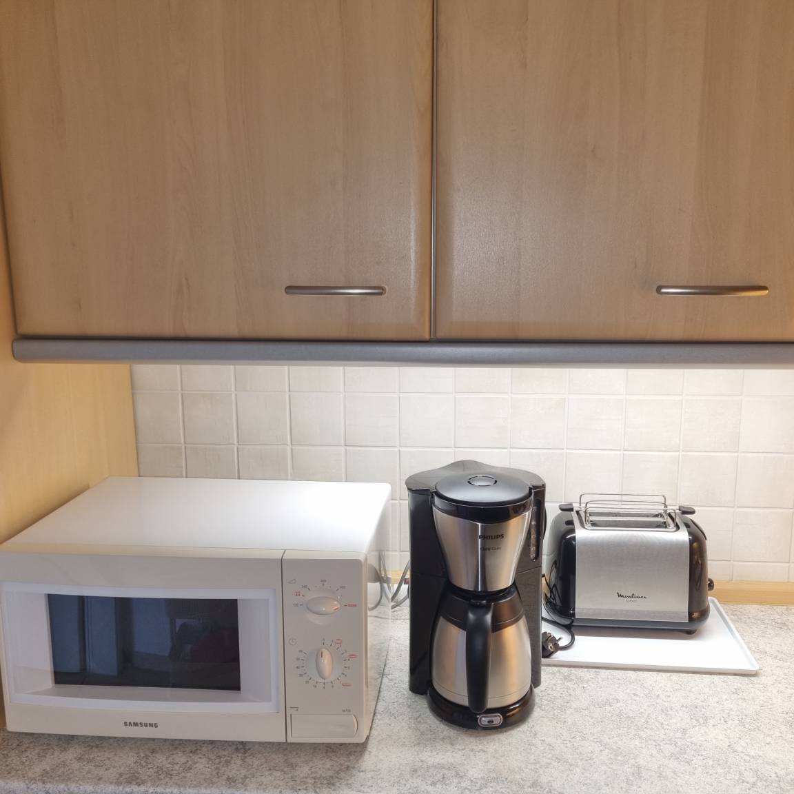 Sie bietet Platz für maximal 3 Personen, wenn das Sofa (Bettmaß: 70 x 1,99m) im Wohnzimmer zusätzlich zum Schlafen genutzt wird. Die Ferienwohnung ist durchgängig gefliest.