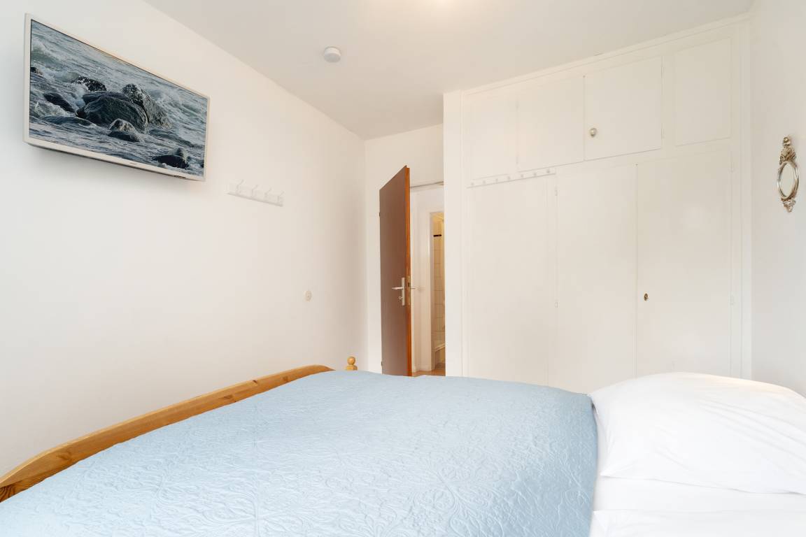 Schlafzimmer 2: 1 Doppelbett (2x 80 x 200 cm), Kleiderschrank, Verdunkelung: Vorhang, kein Platz für ein Babybett vorhanden