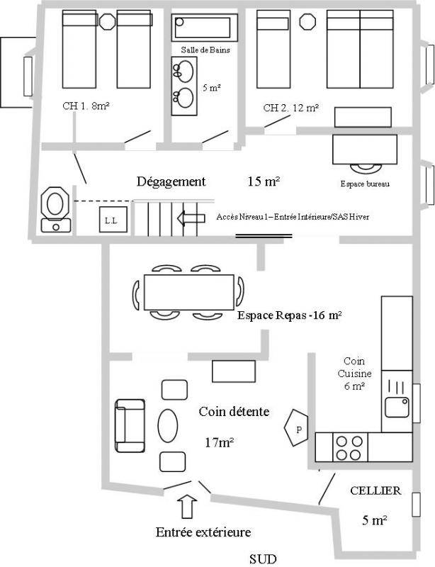 80 m² Gîte ∙ 2 Schlafzimmer ∙ 5 Gäste