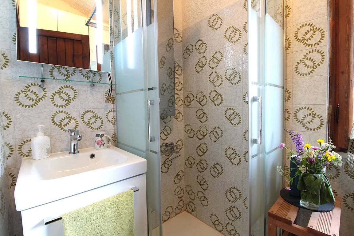 Das Haus erstreckt sich über drei Etagen: Im Erdgeschoss befinden sich die Küche und das Wohnzimmer; im ersten Stock, den man über eine steile Treppe erreicht, gibt es zwei Schlafzimmer – eines mit Etagenbett und eines mit Doppelbett – sowie ein Badezimmer mit Dusche und eine Terrasse, die sich perfekt zum Entspannen eignet. Die Taverne, beheizt mit einem Holzofen, ist der ideale Ort, um gemeinsam zu Abend zu essen und nach einem erlebnisreichen Tag ein Glas Wein zu genießen. Der Garten wird gemeinsam genutzt, doch jedes Haus verfügt über einen eigenen angrenzenden Bereich, in dem man sich auf den Liegestühlen entspannen kann.