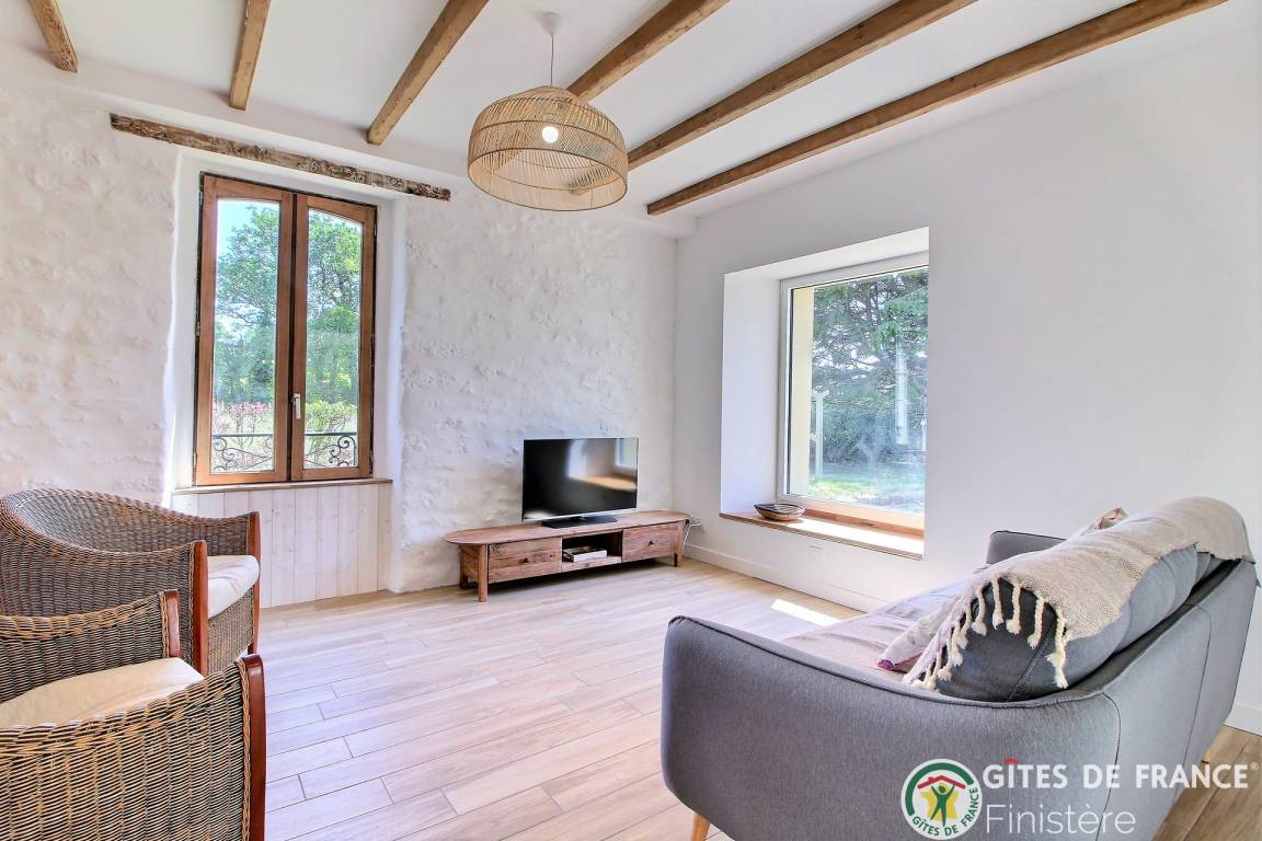 „On a passé deux semaines à Névez en famille dans cette belle maison et cette belle région. La deuxième semaine, il ne faisait pas très beau mais dans la maison il y a beaucoup de lumière et d'espace. Il y a plein des choses à voir et à faire: Les plages, les chemins des douaniers, des petits villages des randonnées en vélo/à pieds. Le soir où le matin, on a donné à manger aux poules... Le gîte est bien situé entre Névez et la mer. Wir haben uns hier sehr wohl gefühlt und wären gerne länger geblieben. Viele Grüße aus Norddeutschland“