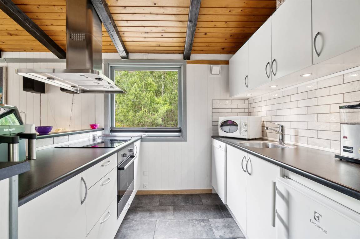 Die Küchenabteilung des Hauses ist neuer und gut funktionierend und auch das Badezimmer wurde in den letzten Jahren renoviert. Die hellen Wände sorgen für eine gute Beleuchtung im Inneren, und insgesamt wurde darauf geachtet, dass das Wohnzimmer ordentlich und ansprechend möbliert ist.